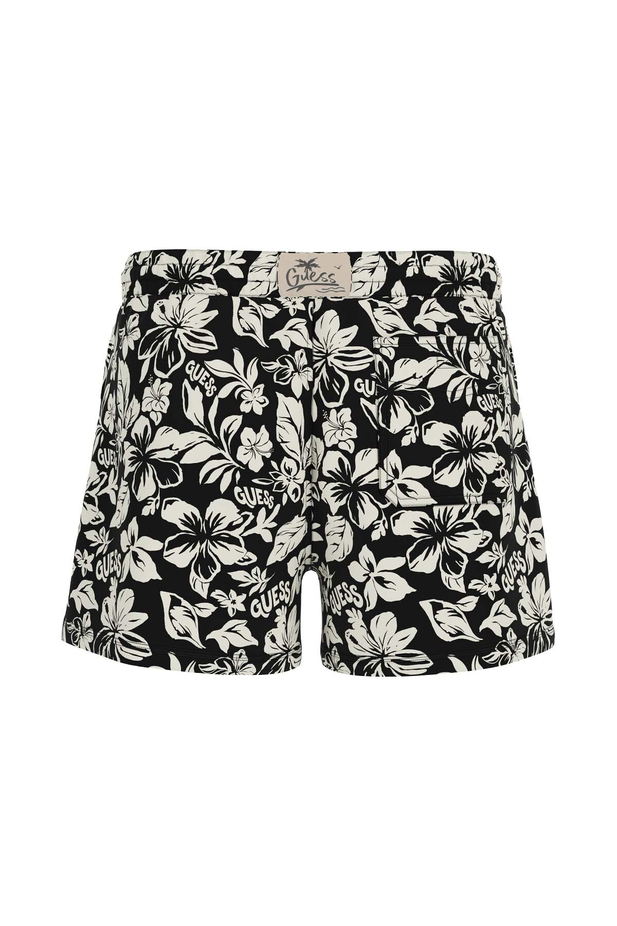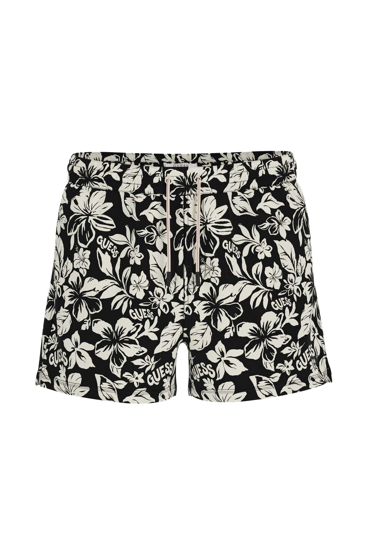 Siyah zemin üzerine krem rengi büyük çiçek desenleriyle tasarlanan bu deniz şortu, deniz ve havuz kullanımı için teknik donanıma sahiptir.