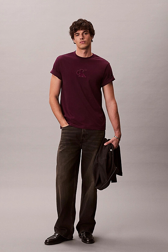 Günlük giyimin temel parçası olan bu tişört, yumuşak dokulu kadife monogram detayıyla klasik stile lüks ve modern bir dokunuş katıyor. %100 pamuklu yumuşak jarse kumaştan üretilen tasarım, cildinize nefes aldırırken "rahat kesim" (relaxed fit) kalıbıyla gün boyu üstün konfor ve hareket özgürlüğü sağlar. Bordo rengin derin ve zengin tonu, göğüs kısmındaki ton sür ton kabartmalı CK kadife aplikesiyle birleşerek sofistike bir görünüm sunar. Bisiklet yaka detayı ve kısa kollu yapısıyla, her mevsim gardırobunuzun favori parçası olmaya adaydır.