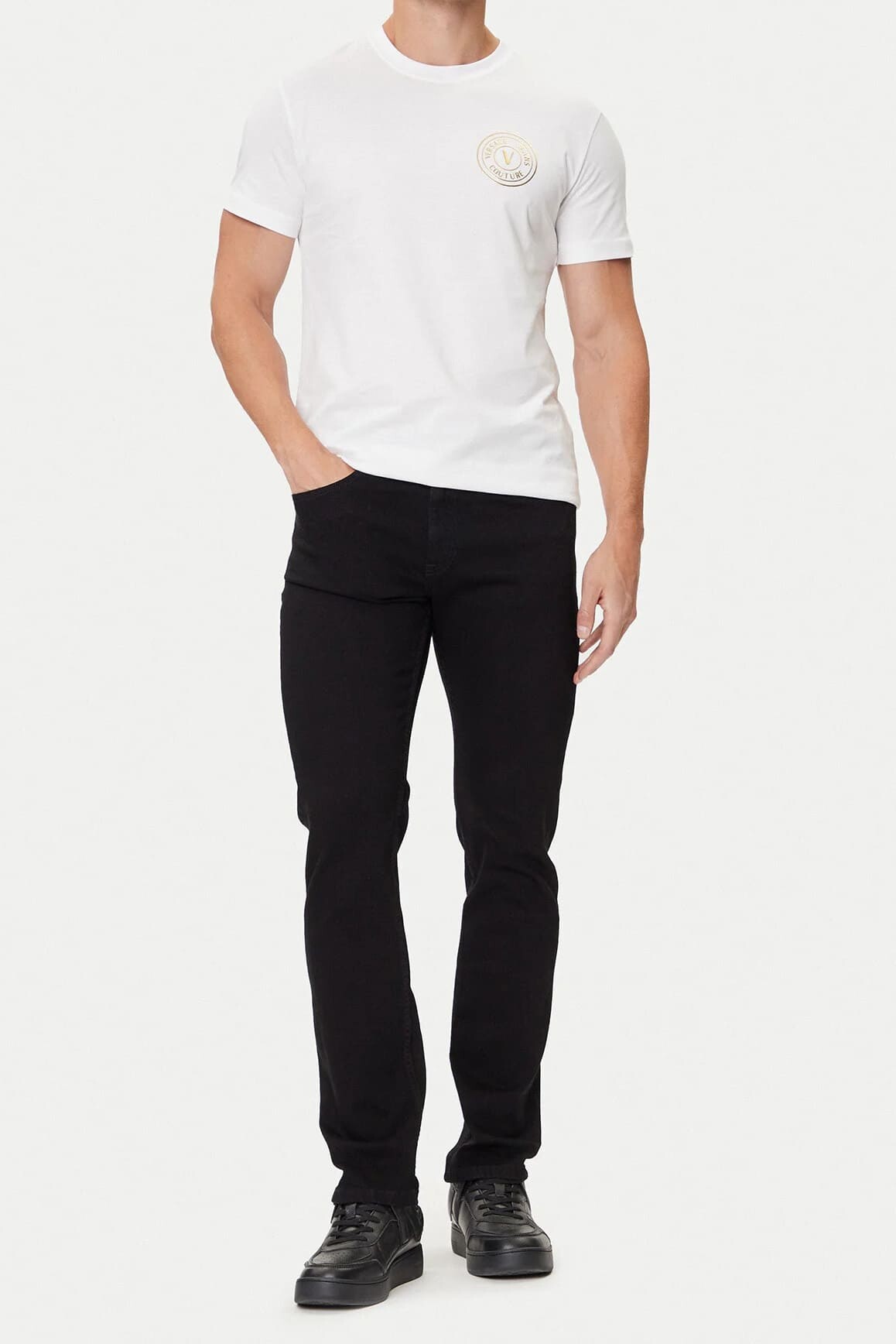 Gardırobunuzun temel parçası olan beyaz tişörte lüks bir dokunuş katan bu tasarım ile stilinizi yansıtın. %100 pamuklu jarse kumaşı sayesinde gün boyu nefes alan üstün bir konfor sunarken, regular fit kalıbı rahat ve modern bir duruş sağlar. Klasik bisiklet yaka tasarımının odak noktası, göğüs kısmını süsleyen yuvarlak, altın rengi parlak varak baskı V amblemidir; bu detay tişörte sofistike ve dikkat çekici bir hava katar. Jean pantolonlardan şortlara kadar her parçayla zahmetsizce kombinlenebilen bu tişört, günlük stilinize ikonik bir imza atmak için mükemmeldir.