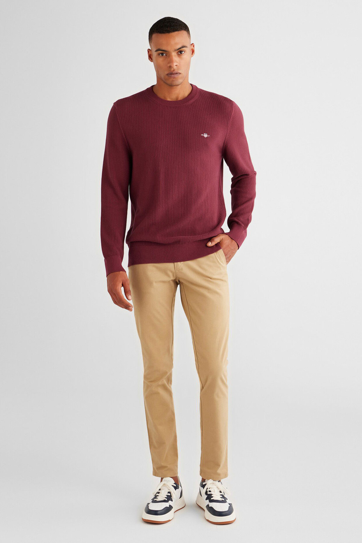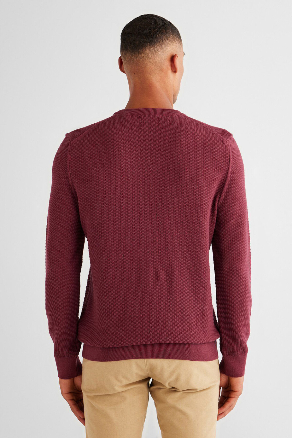 Erkek Regular Fit Bisiklet Yaka Kazak - Bordo
