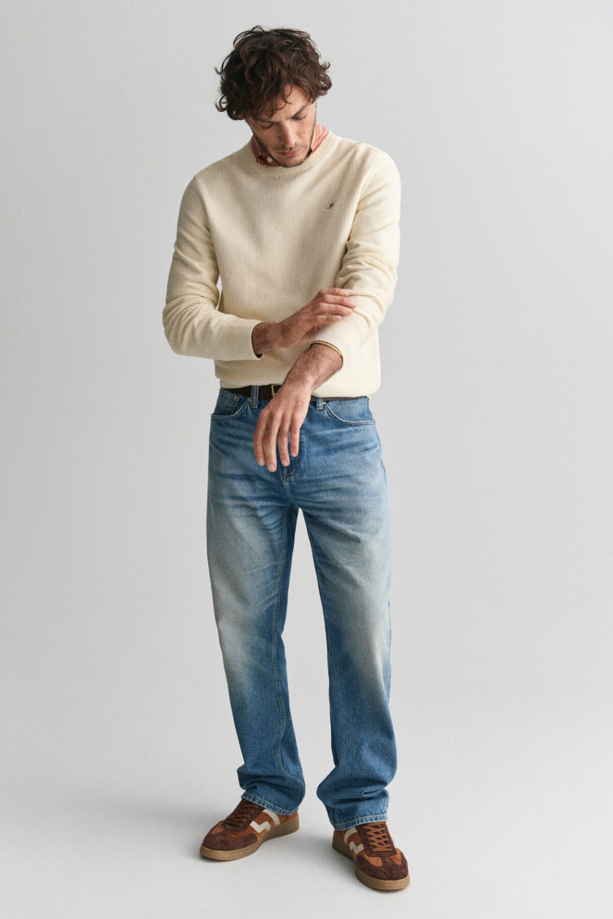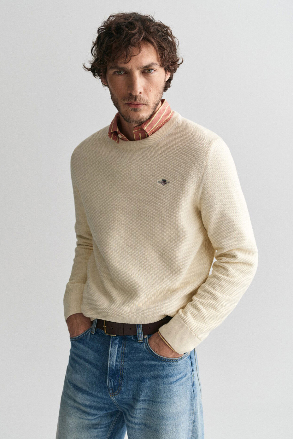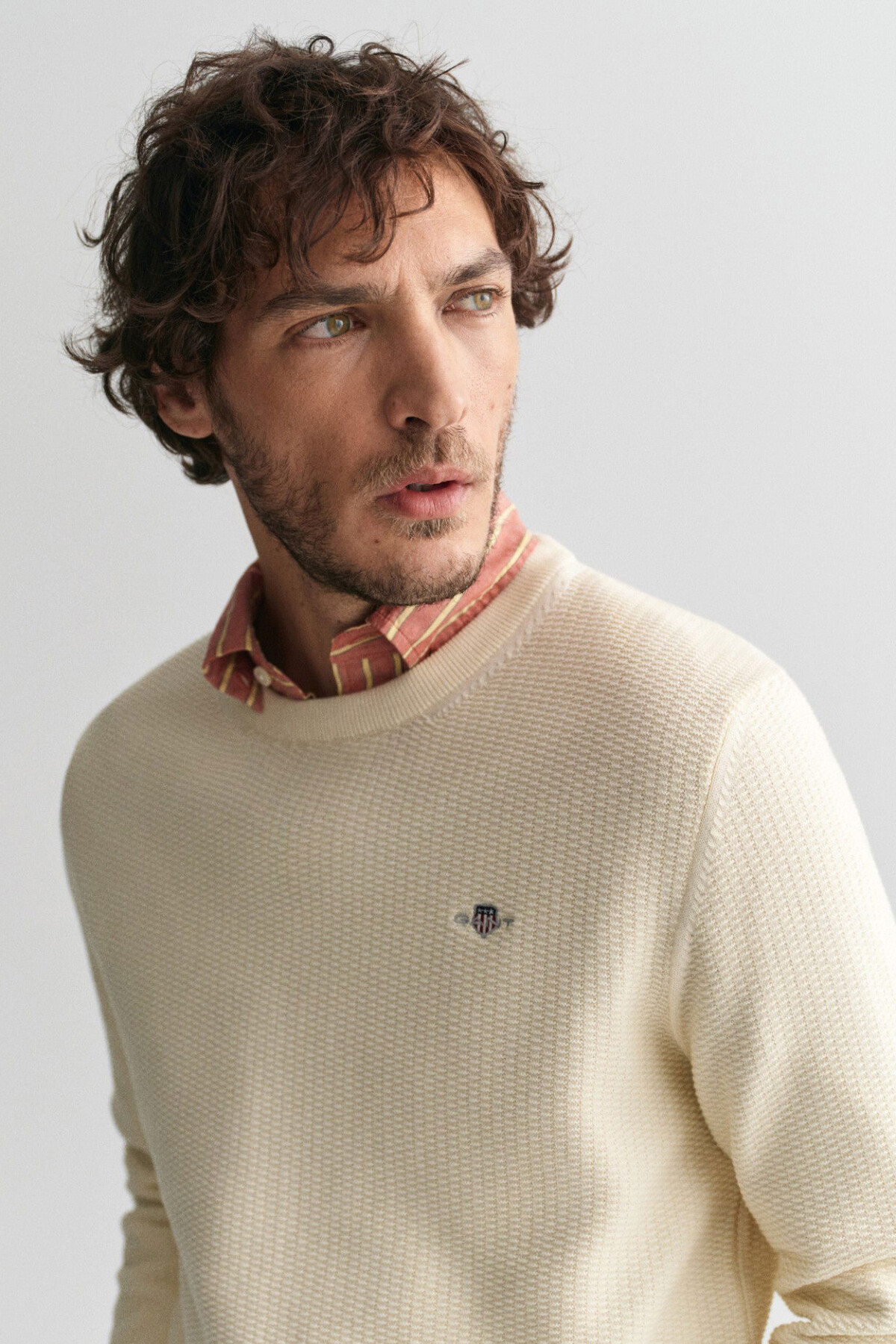 Erkek Regular Fit Bisiklet Yaka Kazak - Krem