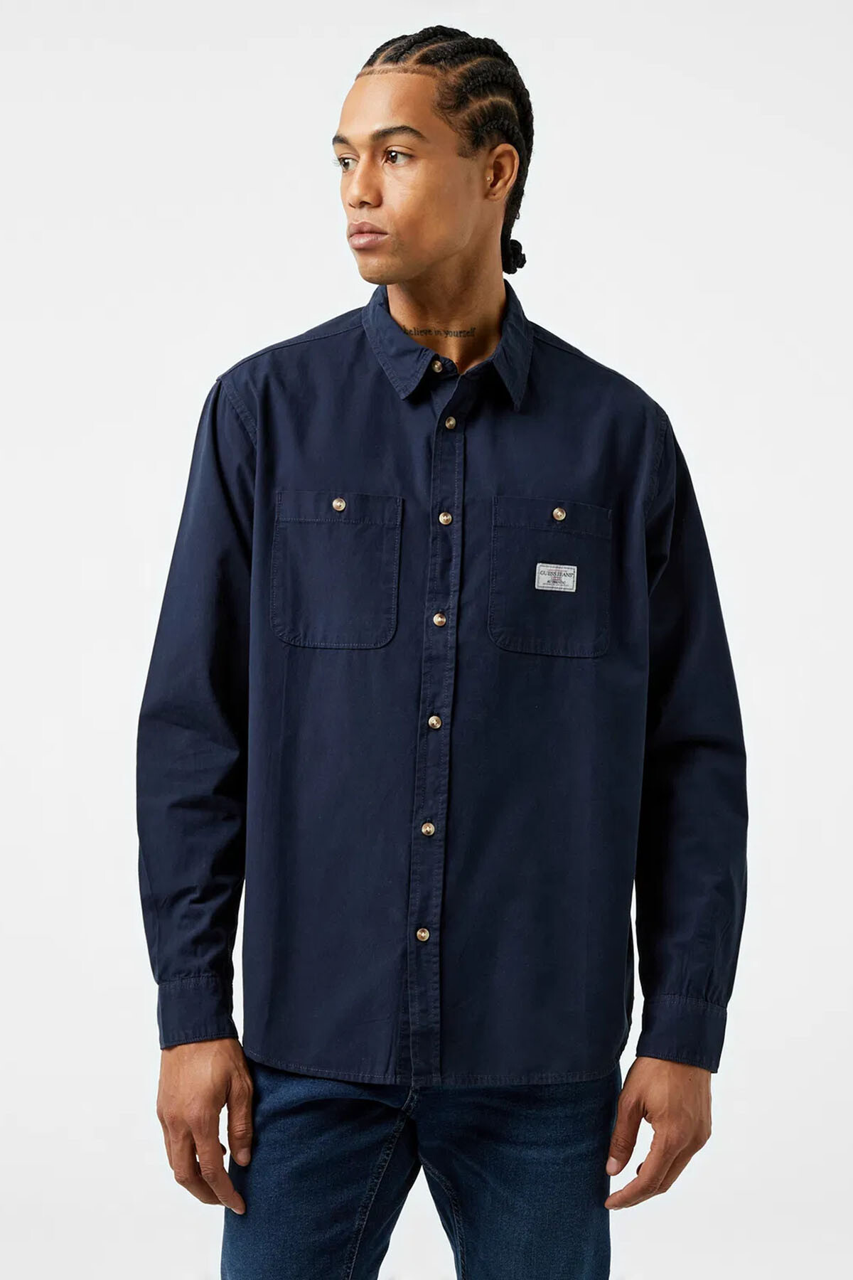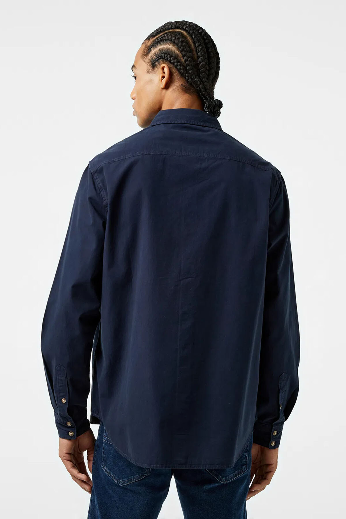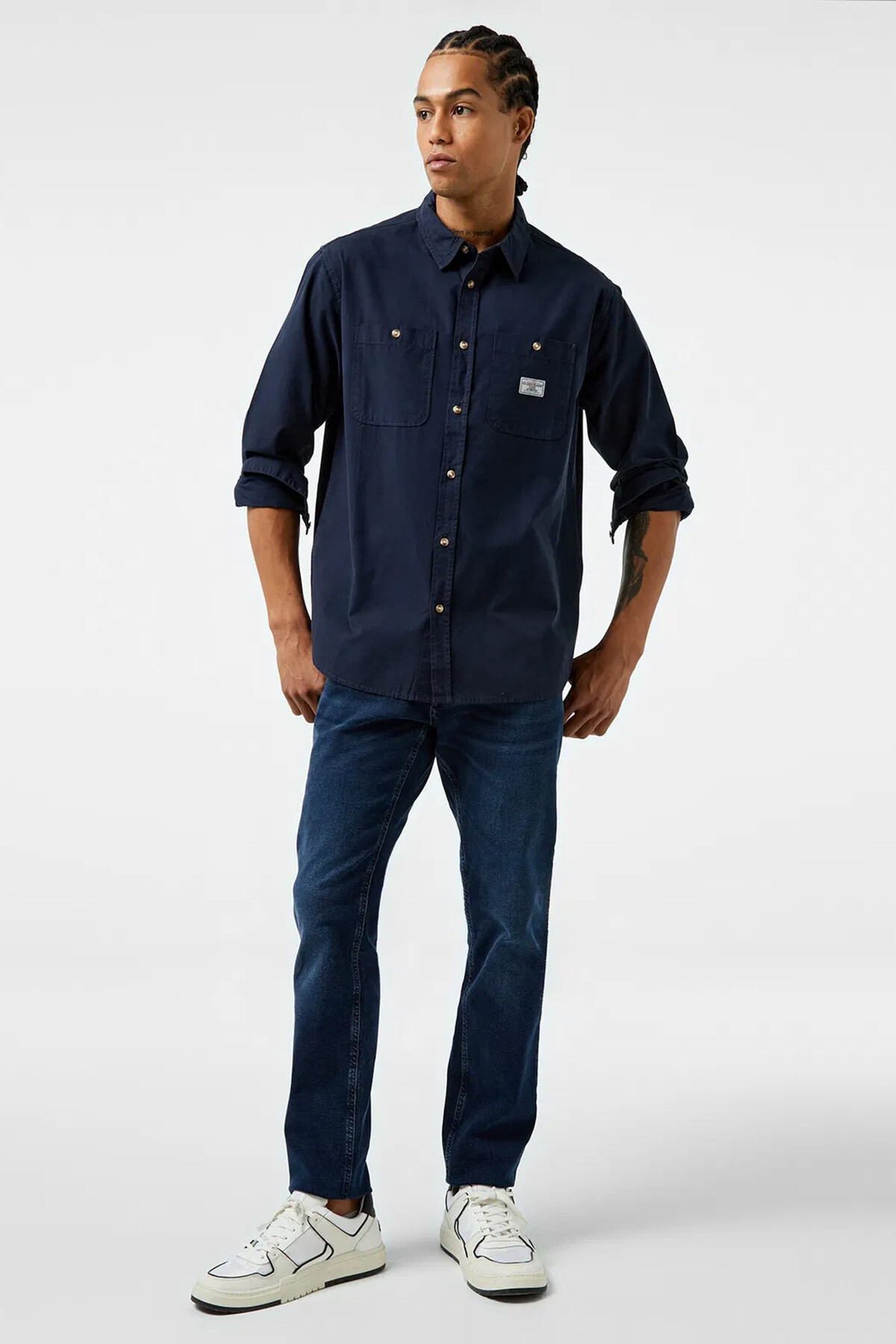 Erkek lacivert gömlek, regular fit kalıbı ve ön kısmındaki çift cepli tasarımıyla modern ve fonksiyonel bir stil sunar. %100 pamuklu kumaşı sayesinde cilde nefes aldıran hafif bir yapıdadır ve gün boyu konfor sağlar. Hem günlük kombinlerde hem de casual iş stillerinde kullanılabilecek çok yönlü bir parça olan bu gömlek, uzun kollu yapısı ve düğmeli kapanışıyla klasik görünümü modern detaylarla birleştirir. Şehir stilinde zamansız bir şıklık arayan erkekler için ideal seçimdir.