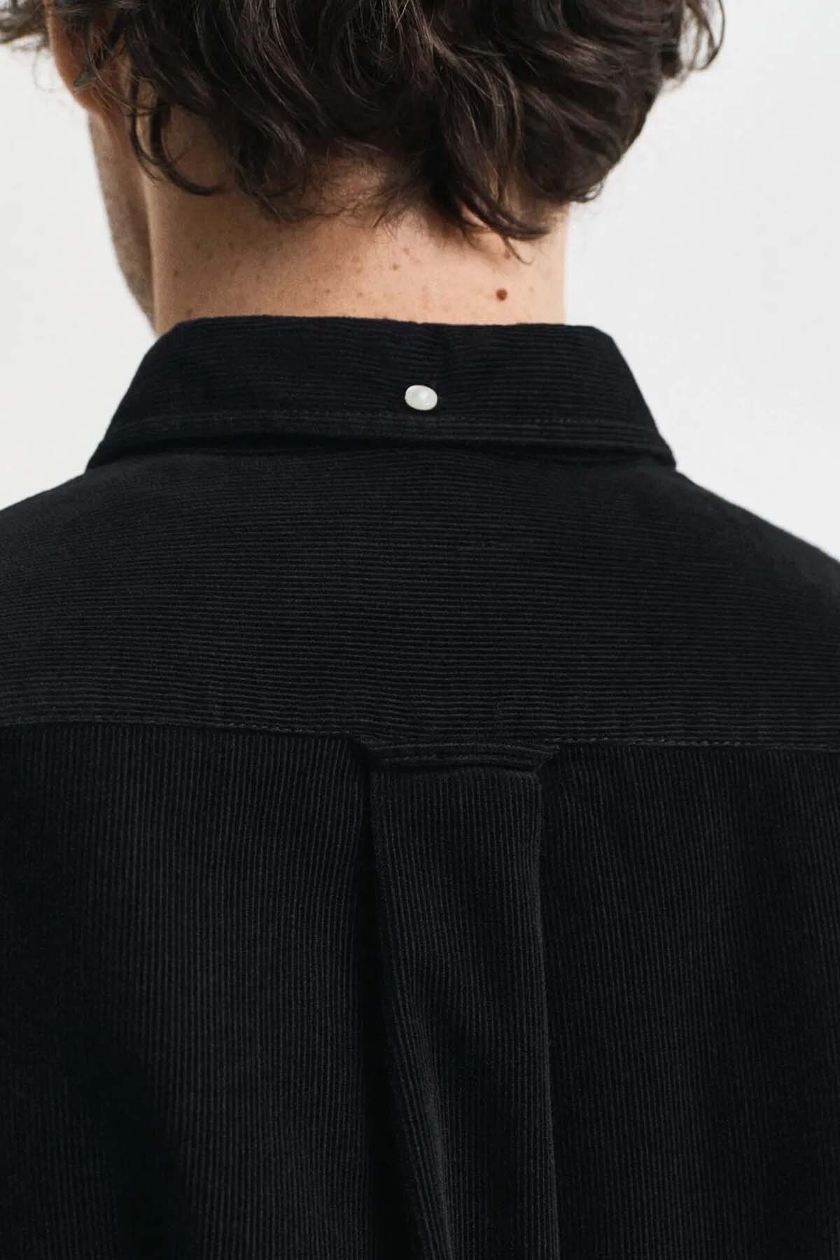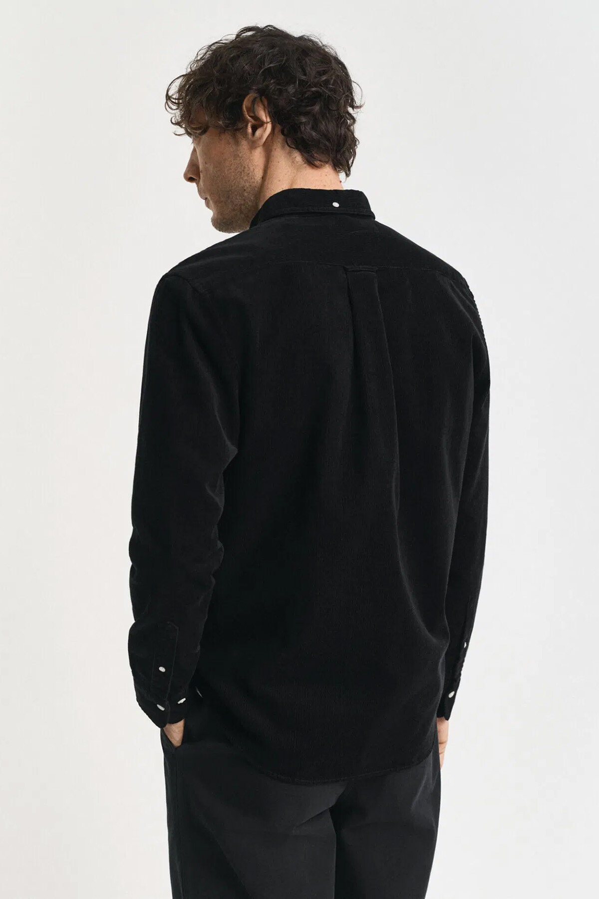 Bu siyah renkli, fitilli kumaş gömlek, sonbahar ve kış aylarında stilinizi zahmetsizce tamamlamak için tasarlandı. Yüksek pamuk içeriğine sahip yumuşak dokusu sayesinde gün boyu konfor sunar. Klasik gömlek yaka detayı, ön kısımdaki inci görünümlü düğmeleri ve manşetleri ile hem resmi hem de günlük kombinlere uyum sağlar. Sol göğüs hizasında yer alan, kontrast renkli zarif nakışlı amblem, ürüne sofistike bir dokunuş katarken, Regular Fit kalıbı rahat ve şık bir duruş sergiler. Gardırobunuzun vazgeçilmezi olacak bu parça, ceketlerin veya kazakların içine rahatlıkla giyilebilir.
