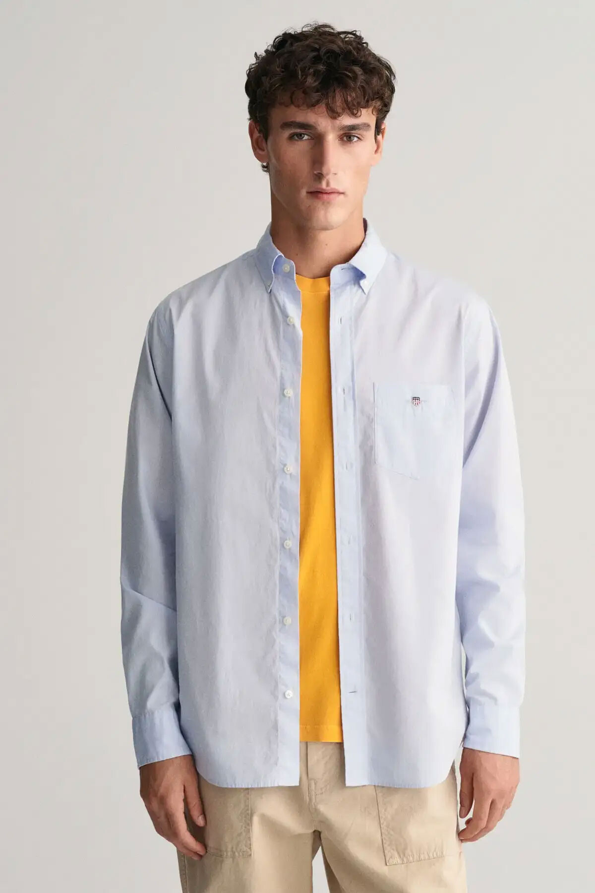 Erkek Regular Fit Düğmeli Yaka Gömlek - Mavi