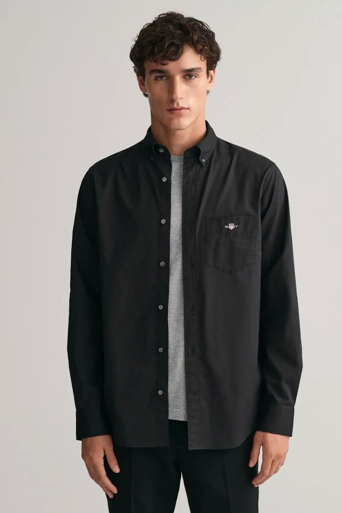 Erkek Regular Fit Düğmeli Yaka Gömlek - Siyah