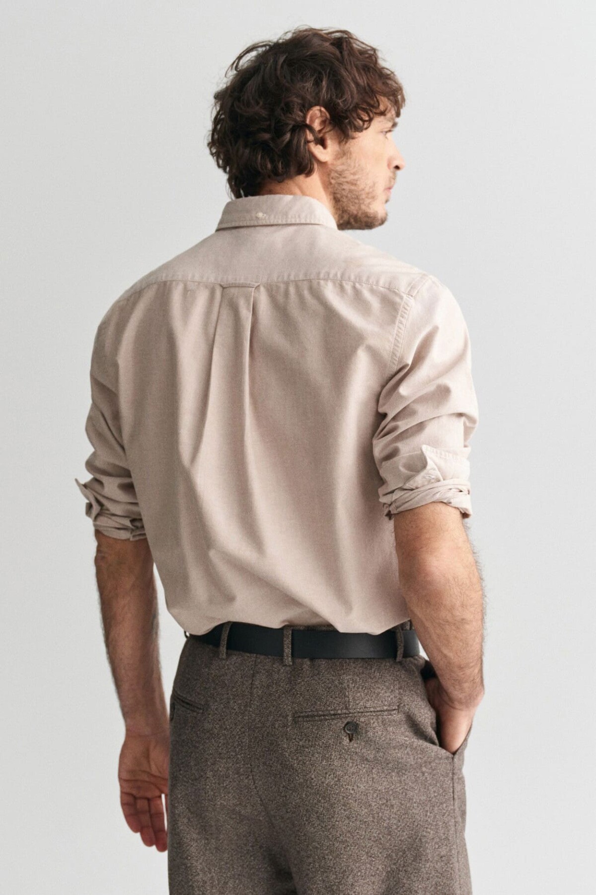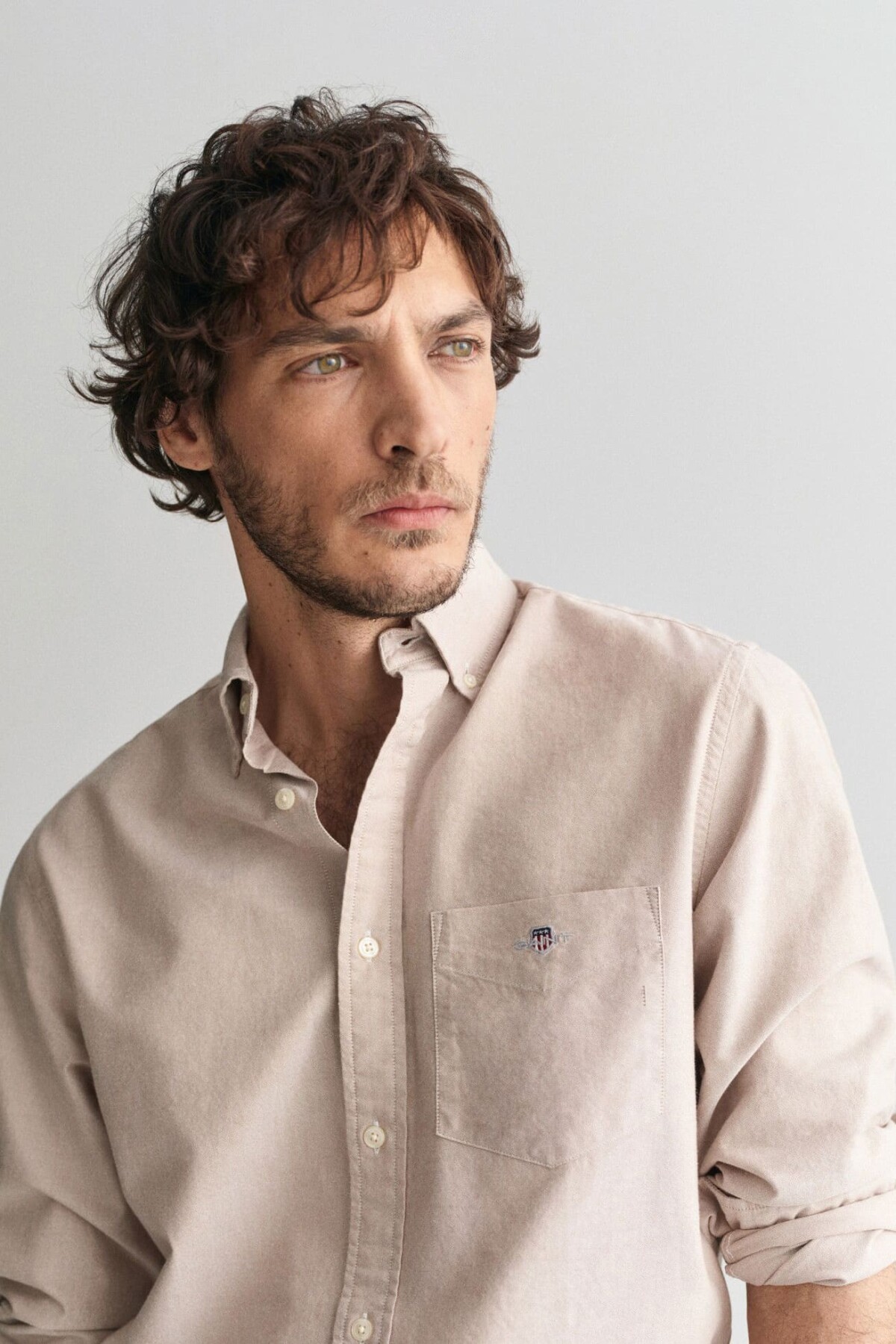Erkek Regular Fit Düğmeli Yaka Oxford Gömlek - Bej