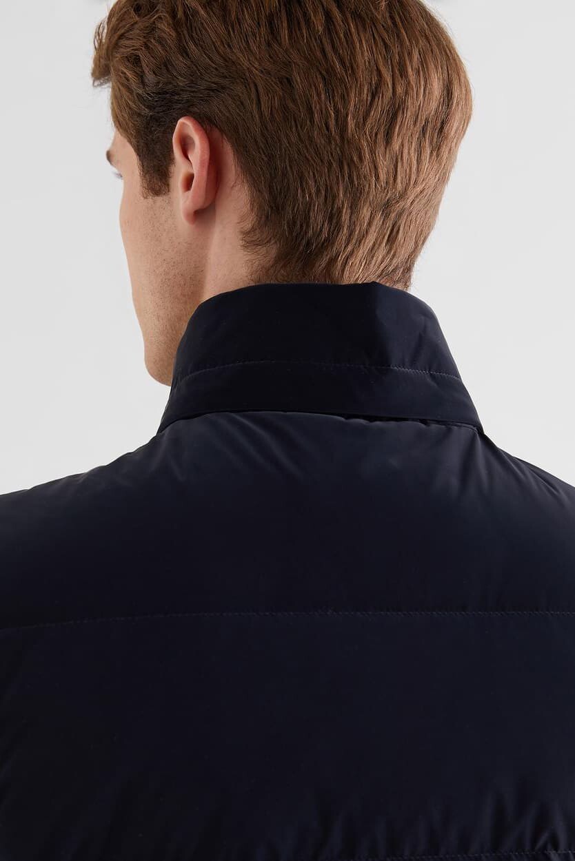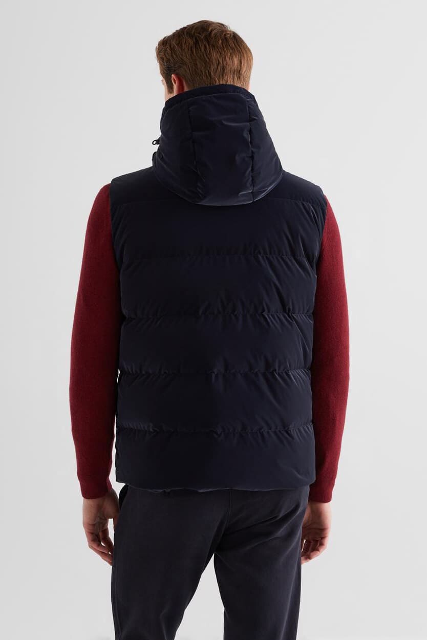 Erkek Regular Fit Fermuar Şeritli Kapüşonlu Yelek - Lacivert