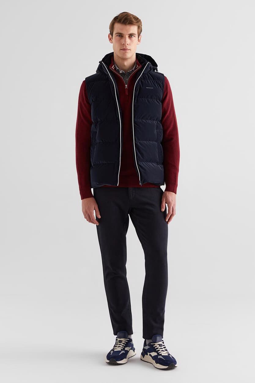 Günlük stilinizi tamamlayacak modern ve rahat bir seçenek olan bu kapüşonlu yelek, %100 polyester yapısıyla konfor sunar. Regular fit kesimi rahat bir kullanım sağlarken, kapüşonlu tasarımı ve çıtçıtlı ön cepleriyle fonksiyonelliği ön plana çıkarır. Fermuar kenarı boyunca uzanan yazı şeridi ve göğüsteki minimal yazı logosu, tasarıma dinamik ve ikonik bir hava katıyor. Geçiş mevsimleri için ideal olan bu yelek, soğuk kış aylarında triko veya sweatshirt'lerinizin üzerine giymek için de mükemmel bir katmandır.