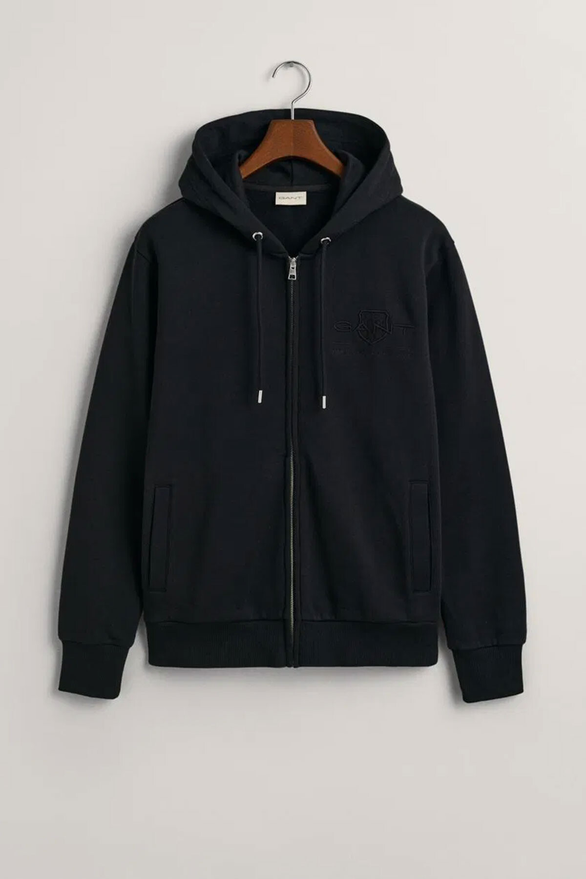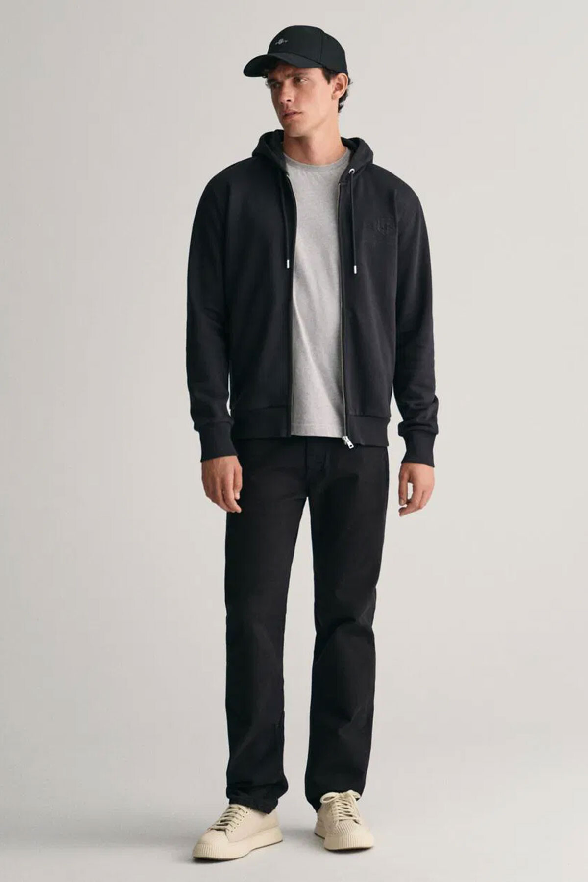 Erkek Regular Fit Fermuarlı Logolu Sweatshirt - Siyah