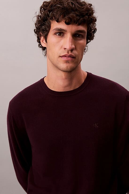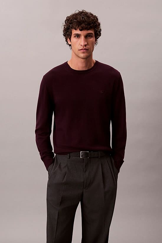 Erkek Regular Fit Merinos Yünü Triko Kazak - Koyu Bordo