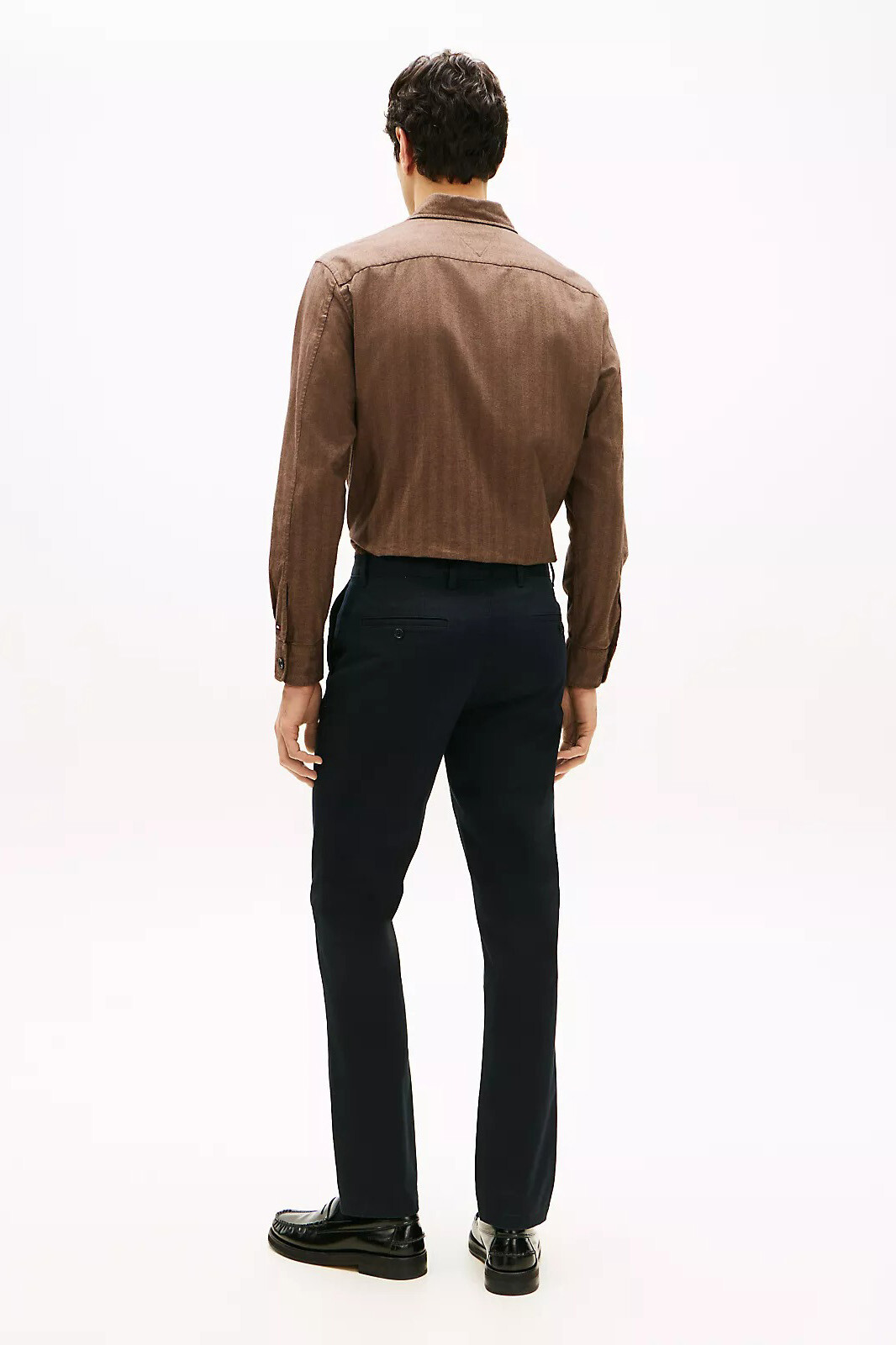 %97 pamuk ve %3 elastan karışımlı özel kumaş yapısı, pamuğun doğal nefes alabilirliğini hafif bir esneklikle buluşturarak gün boyu hareket özgürlüğü ve üstün konfor sunar. Twill dokumanın kazandırdığı dayanıklı ve tok yüzey, koyu lacivert rengin asaletiyle birleşerek hem ofis ortamında hem de akşam davetlerinde çok yönlü bir şıklık yaratır. Vücudu sıkmadan dengeli bir şekilde saran tam kalıbı, klasik chino silüetini modern bir rahatlıkla yorumlar. Ön kısımda pratik fermuarlı kapama, yanlarda el cepleri ve arkada düğmeli şerit cepler ile donatılan tasarım, işlevselliği rafine detaylarla tamamlar.