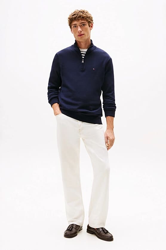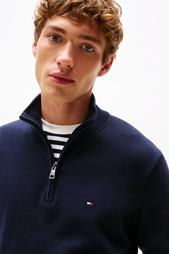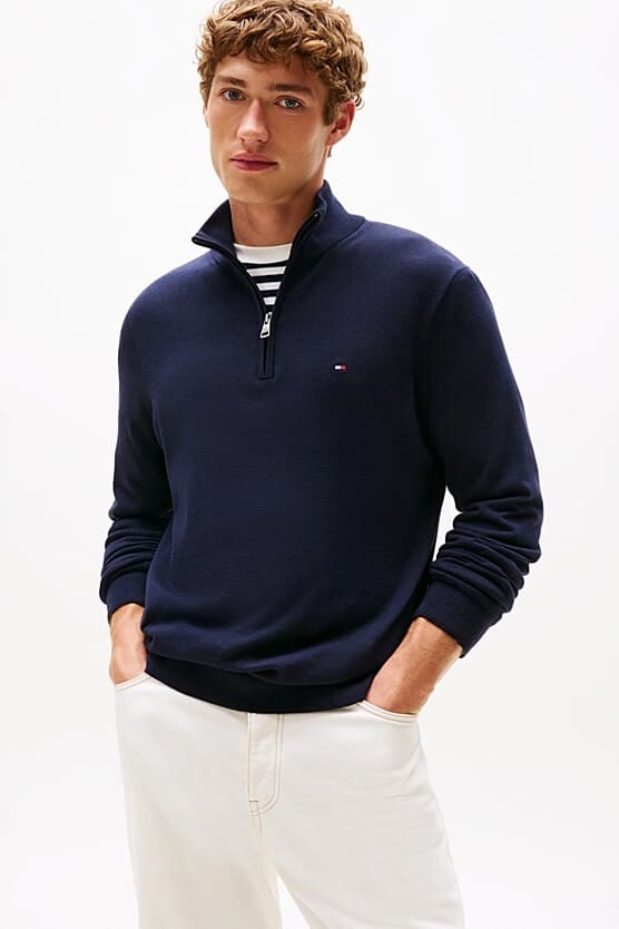 Çok yönlü ve modern bir tasarıma sahip bu triko kazak, gardırobunuzun kilit parçalarından biri olacak. Nefes alan %100 pamuklu triko dokusuyla gün boyu konfor sunarken, yarım fermuarlı dik yakası modern bir görünüm kazandırır. Regular fit (tam kalıp) kesimi, gömleklerin üzerine veya tek başına rahatça giymenize olanak tanırken, göğüsteki minimalist nakış logosu tasarıma zarif bir imza atar.