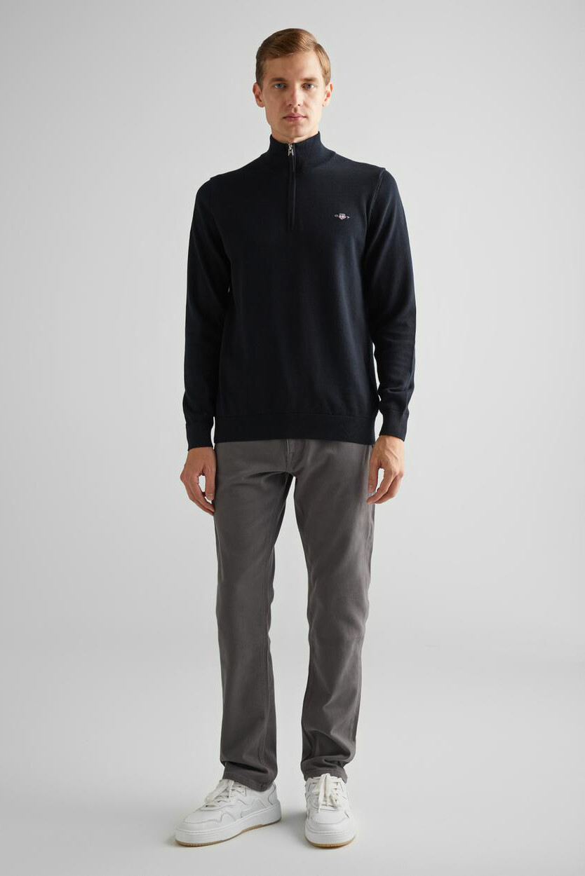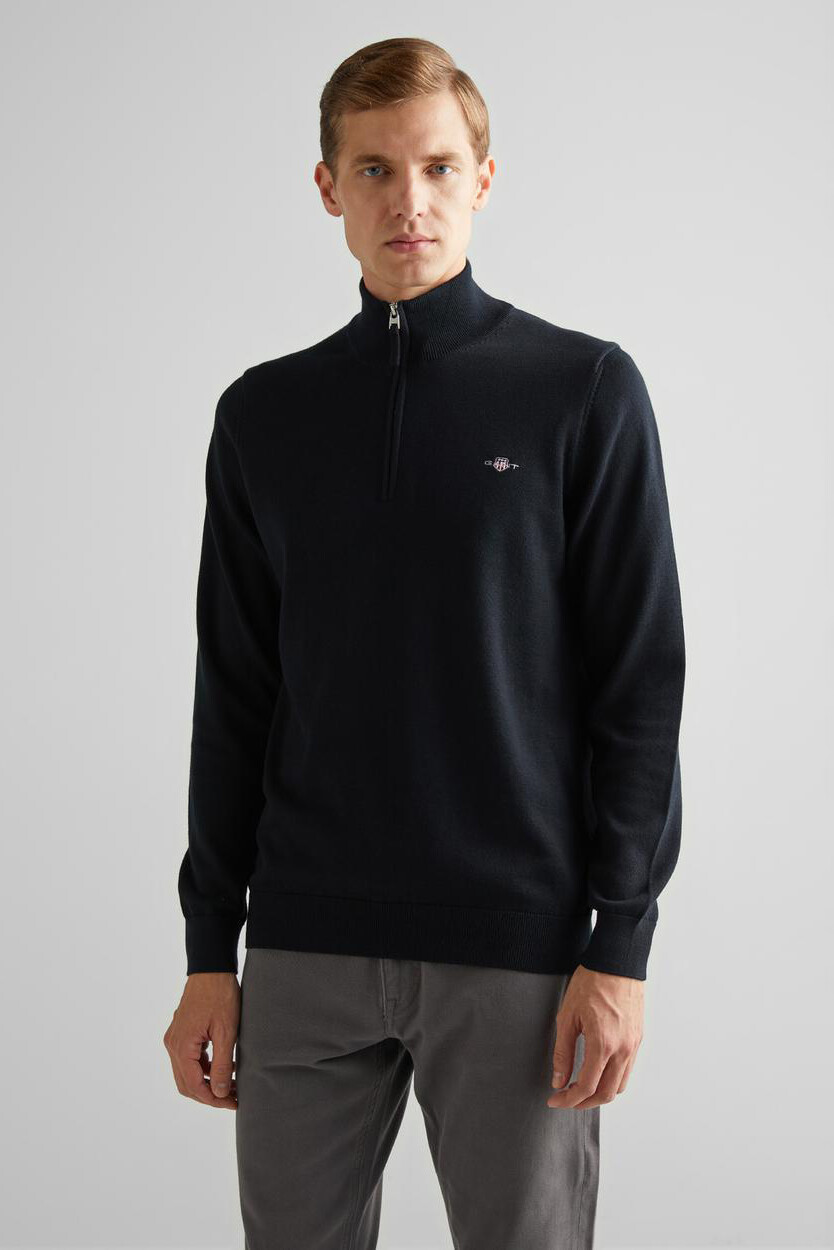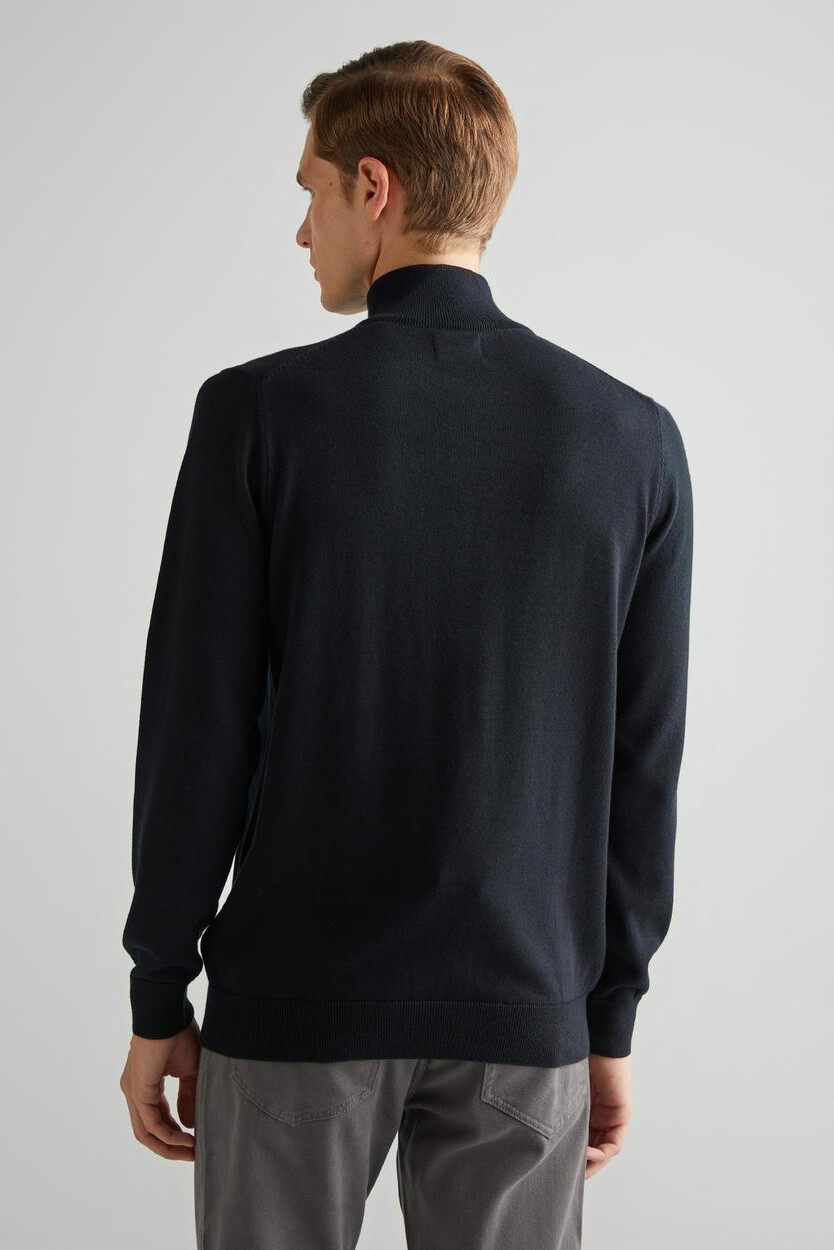 Erkek Regular Fit Yarım Fermuarlı Kazak - Siyah