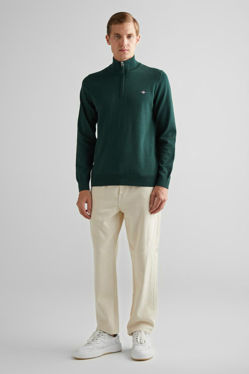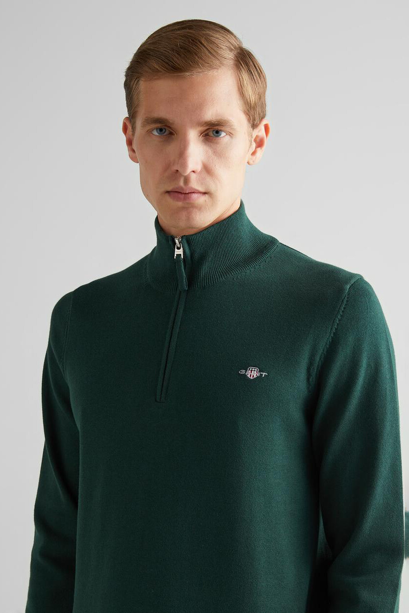Erkek Regular Fit Yarım Fermuarlı Kazak - Yeşil