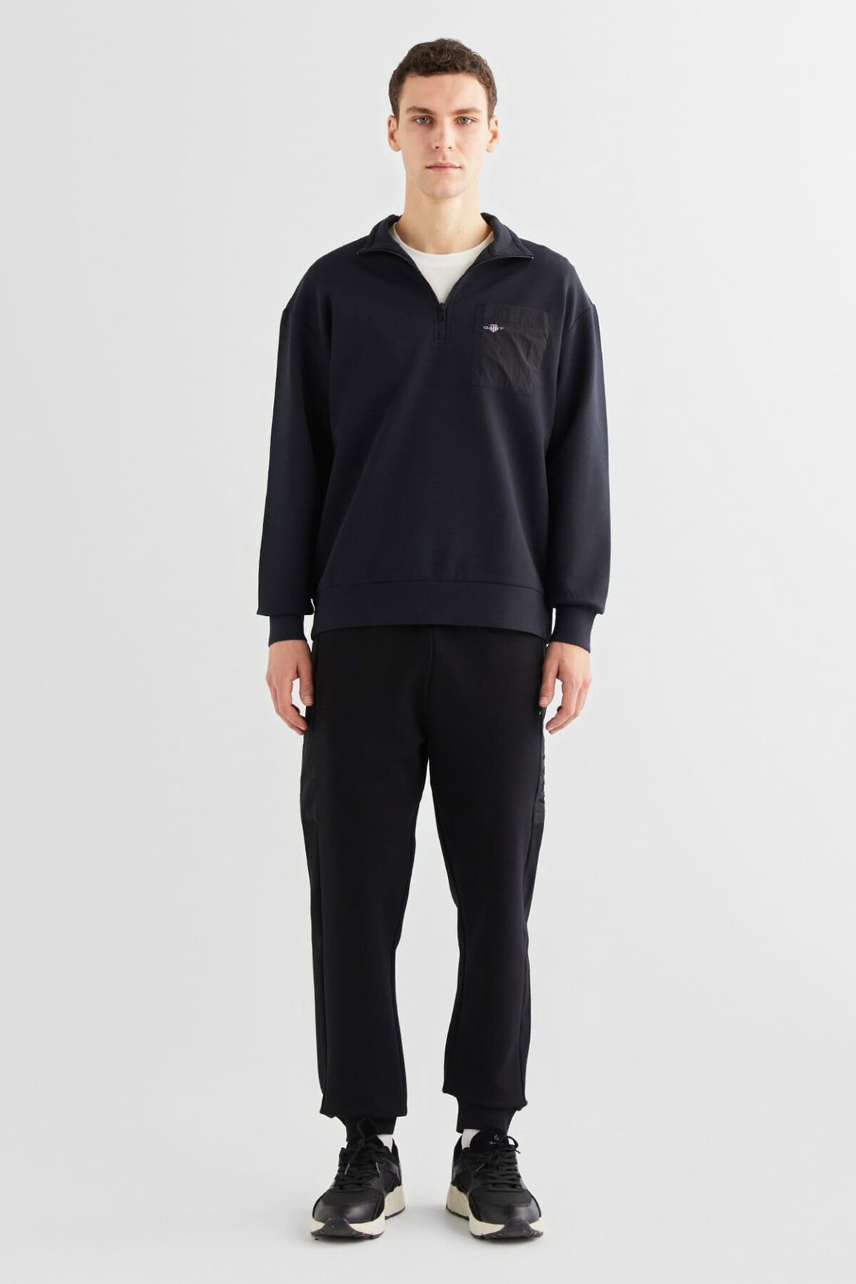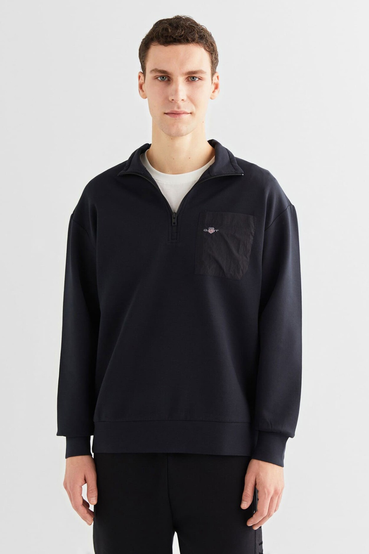 Erkek Relaxed Fit Yarım Fermuarlı Sweatshirt - Siyah