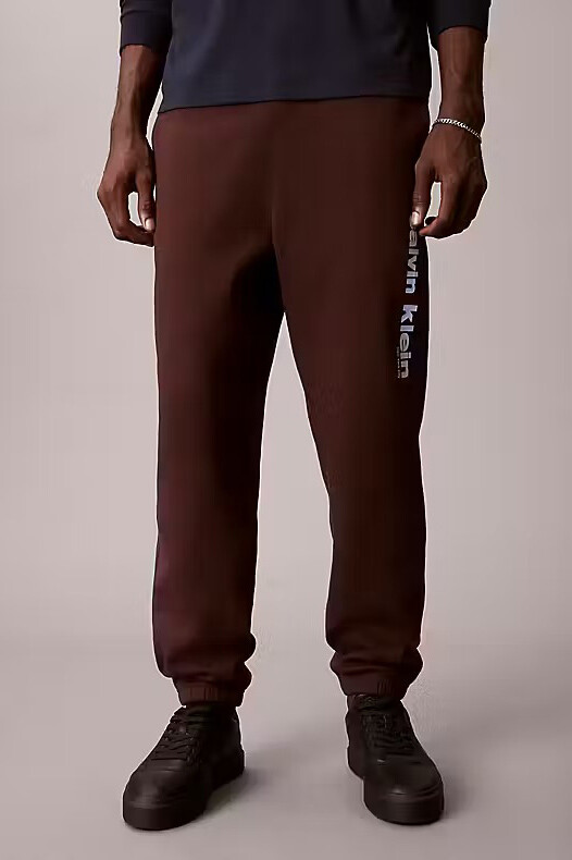 Tasarımın sol bacak kısmında dikey olarak yer alan büyük "Calvin Klein" grafik logosu, retro spor giyim tarzına modern bir vurgu yapar. Esnek elastik bel bandı ve paça kısımlarındaki ribana detayları, vücuda tam uyum sağlayarak hareket özgürlüğünüzü destekler. Yan kısımlardaki pratik cepler ve arka paneldeki tek fileto cep, fonksiyonel bir kullanım alanı sunar. Astarsız ve fermuarsız yapısıyla sadeleşen bu model, tam kalıp (tam) özellikleri sayesinde konforlu bir silüet çizer.