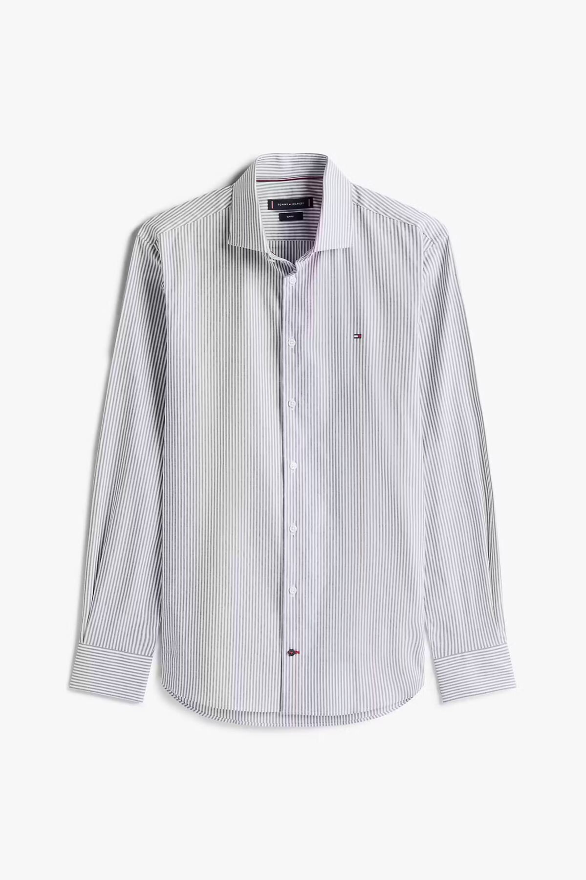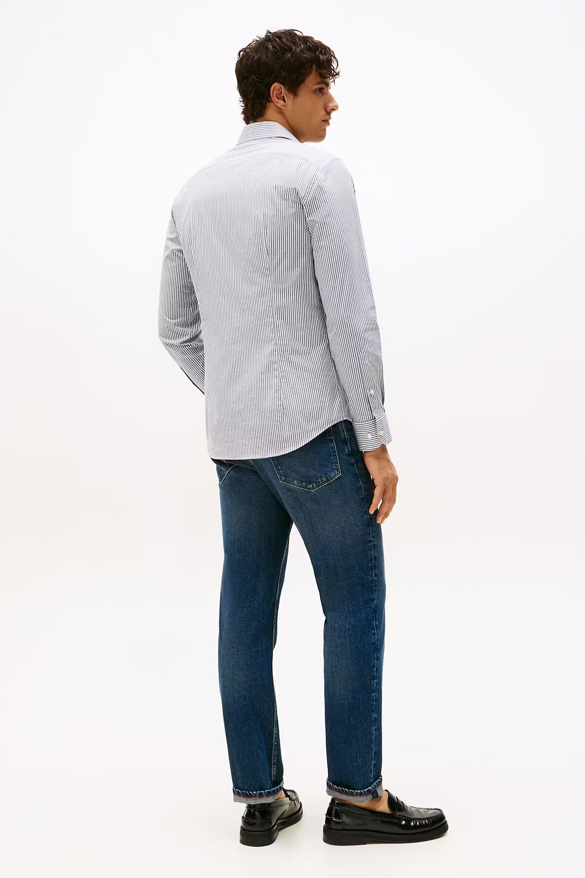 Erkek Slim Fit Çizgili Gömlek - Lacivert/Beyaz