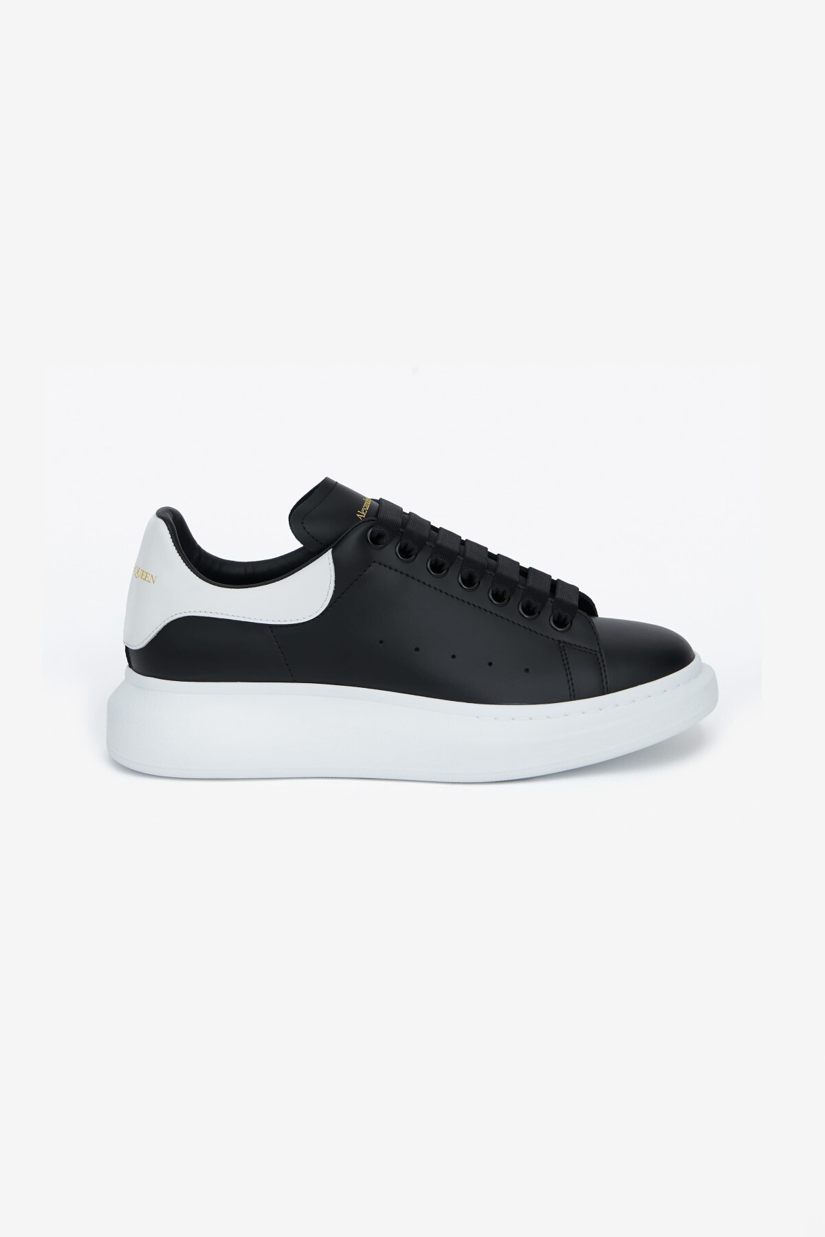 İkonik ve hacimli platform tabanıyla anında tanınan bu sneakers, minimalist lüksü ve modern tasarımı bir araya getiriyor. Üstün kaliteli dana derisinden üretilen pürüzsüz siyah saya, yan kısımdaki perfore (delikli) detaylarla nefes alabilirlik sunar. Tasarımın en belirgin özelliği olan kontrast beyaz renkli topuk pedi ve imzası niteliğindeki hacimli beyaz kauçuk tabanı, ayakkabıya çarpıcı bir görünüm katar. Dil ve topuk kısmındaki altın rengi yazı detayları, bu İtalyan yapımı sneakers'a zarif bir imza atar.