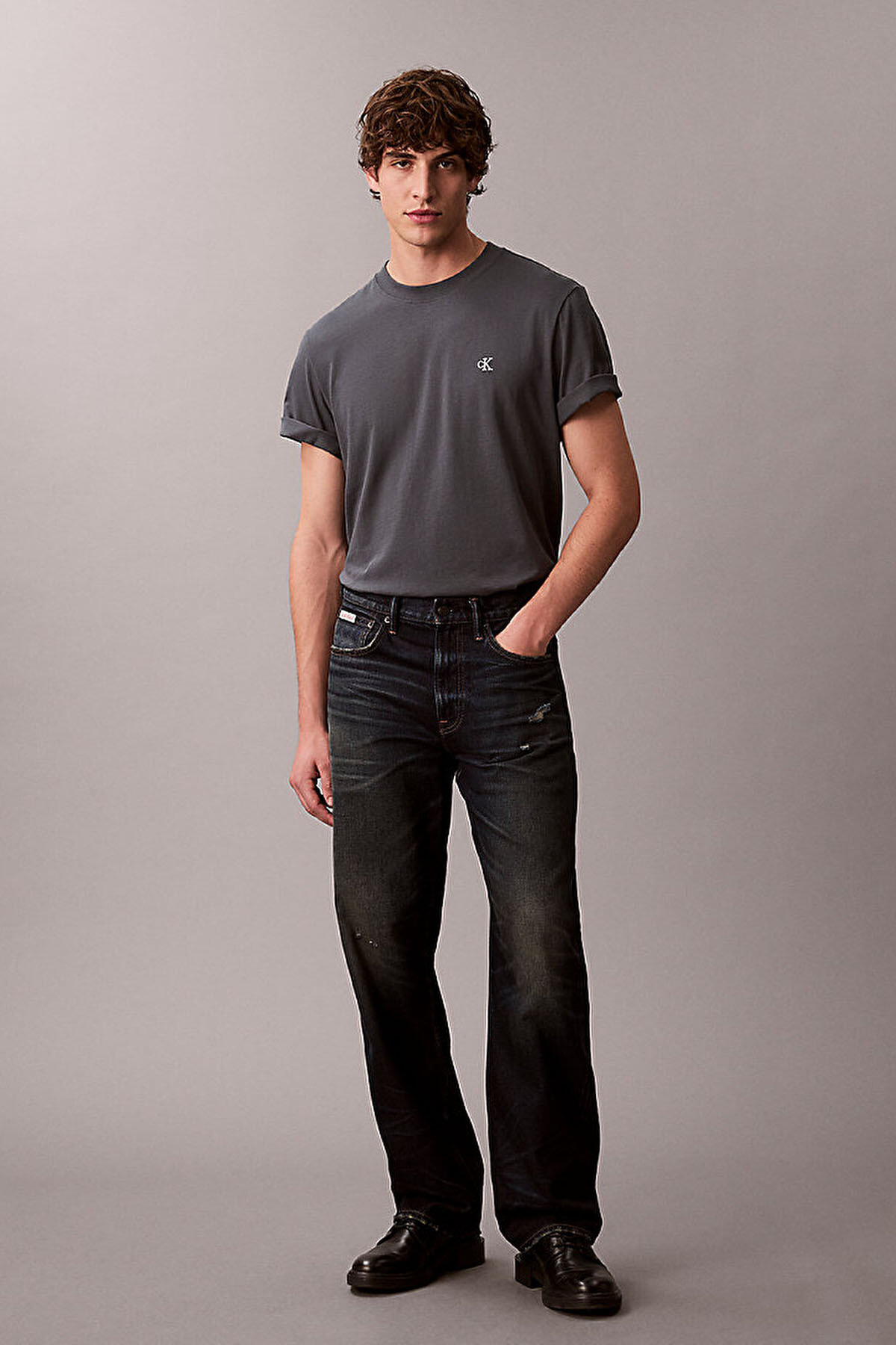 Minimalist bir estetikle hazırlanan tasarımda, sol göğüs üzerinde yer alan küçük ve kontrast renkli ikonik "CK" monogram logo baskısı markanın zarif imzasını taşır. Klasik bisiklet yaka ve tam kalıp (regular fit) özellikleri sayesinde her vücut tipine uyum sağlayan model, kısa kollu silüetiyle hareket özgürlüğünüzü destekler. Şehir hayatının temposuna eşlik edecek bu çok yönlü parça, çabasız şıklığı konforla buluşturur.