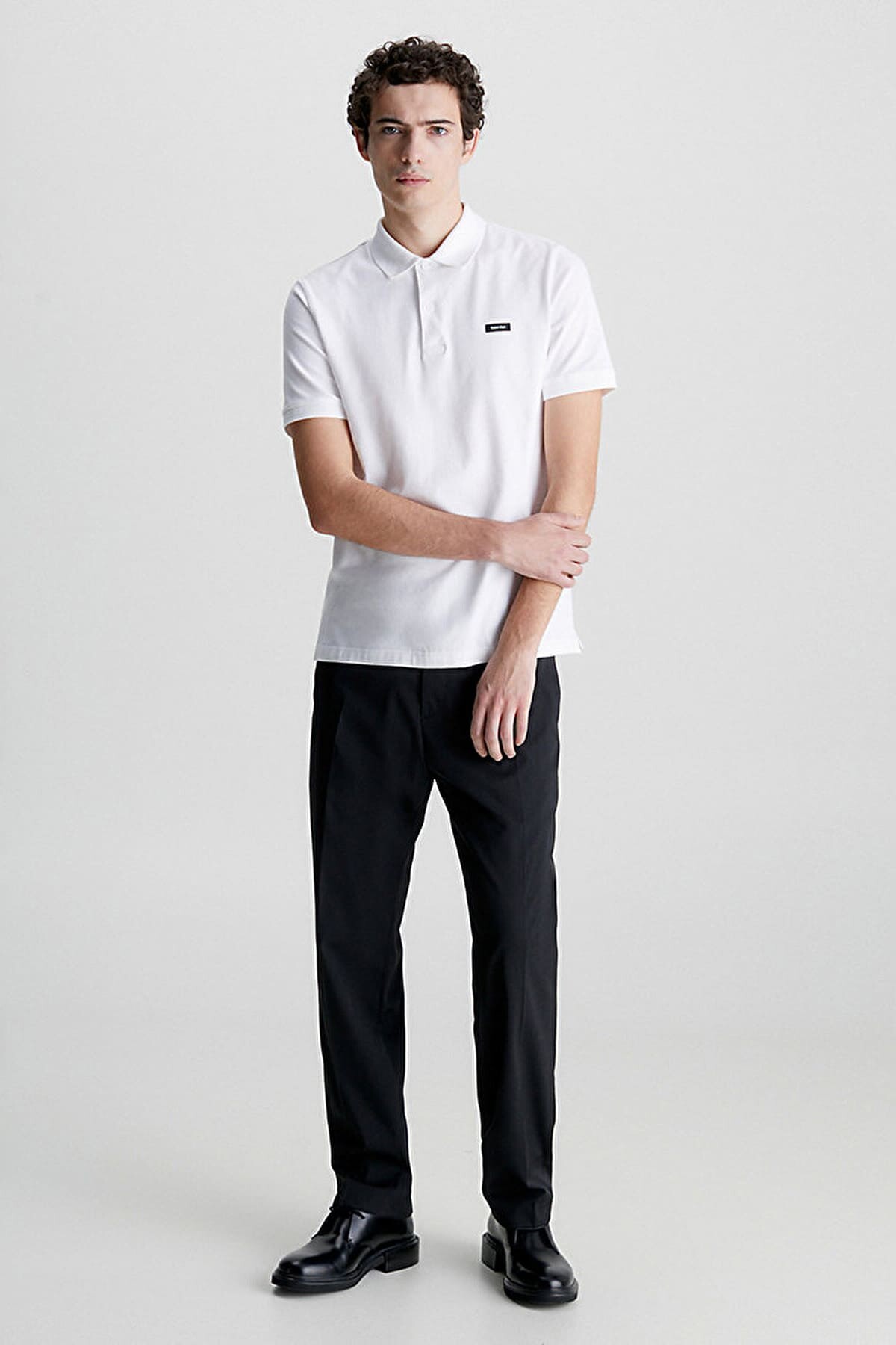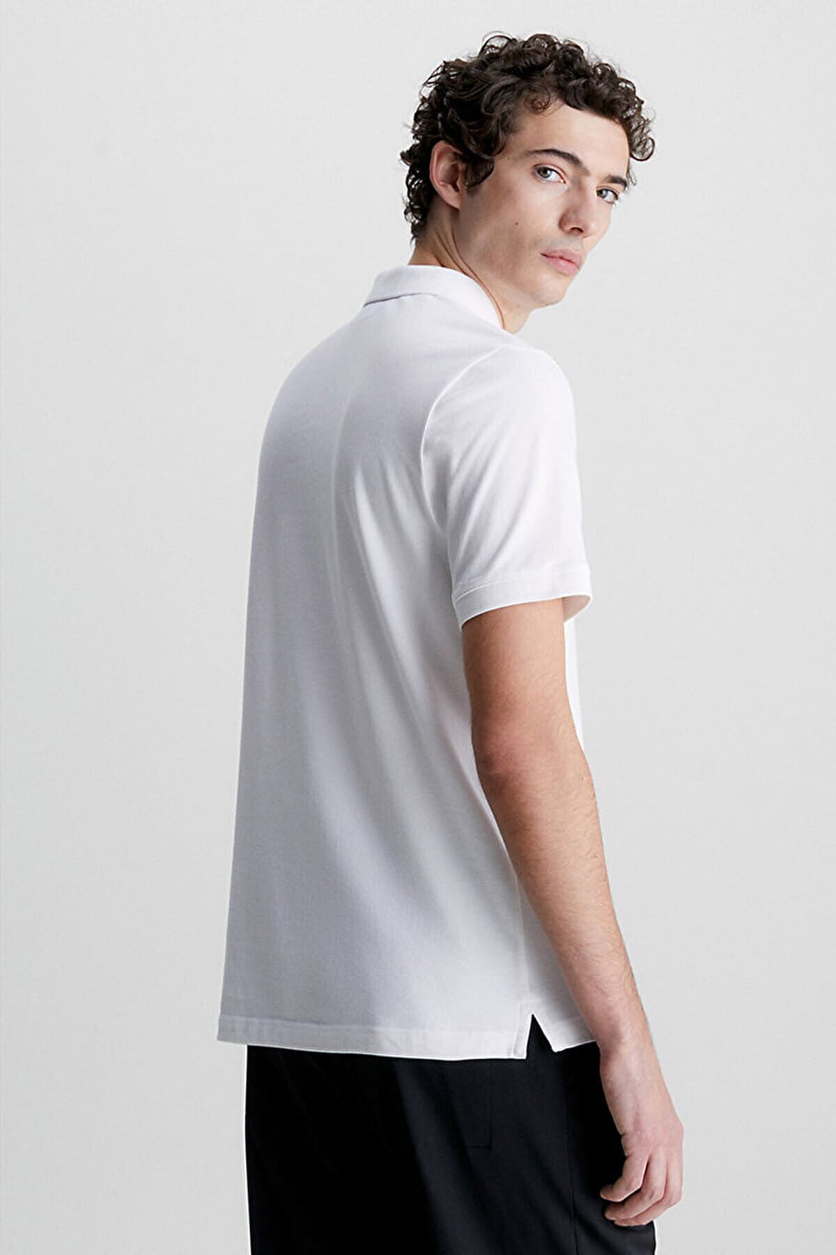 Erkek Streç Pique Slim Polo T-Shirt - Beyaz