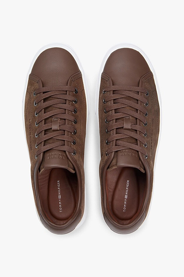 %100 deri materyallerin ustaca harmanlanmasıyla tasarlanan bu sneaker, pürüzsüz nappa deri ve yumuşak süet dokuların şık birlikteliğini sunar. Yan panellerde kullanılan süet detaylar tasarıma derinlik ve zengin bir doku kazandırırken, burun ve topuk kısmındaki pürüzsüz deri bölümler klasik Court silüetine modern bir yorum getirir. Gövdeyle kontrast oluşturan kalın beyaz taban yapısı, hem dinamik bir görünüm sağlar hem de gün boyu konforlu adımlar atmanıza yardımcı olur. Topuk kısmındaki ikonik bayrak logosu ve taban arkasındaki kabartma marka yazısı, sade tasarıma karakteristik bir imza ekler.