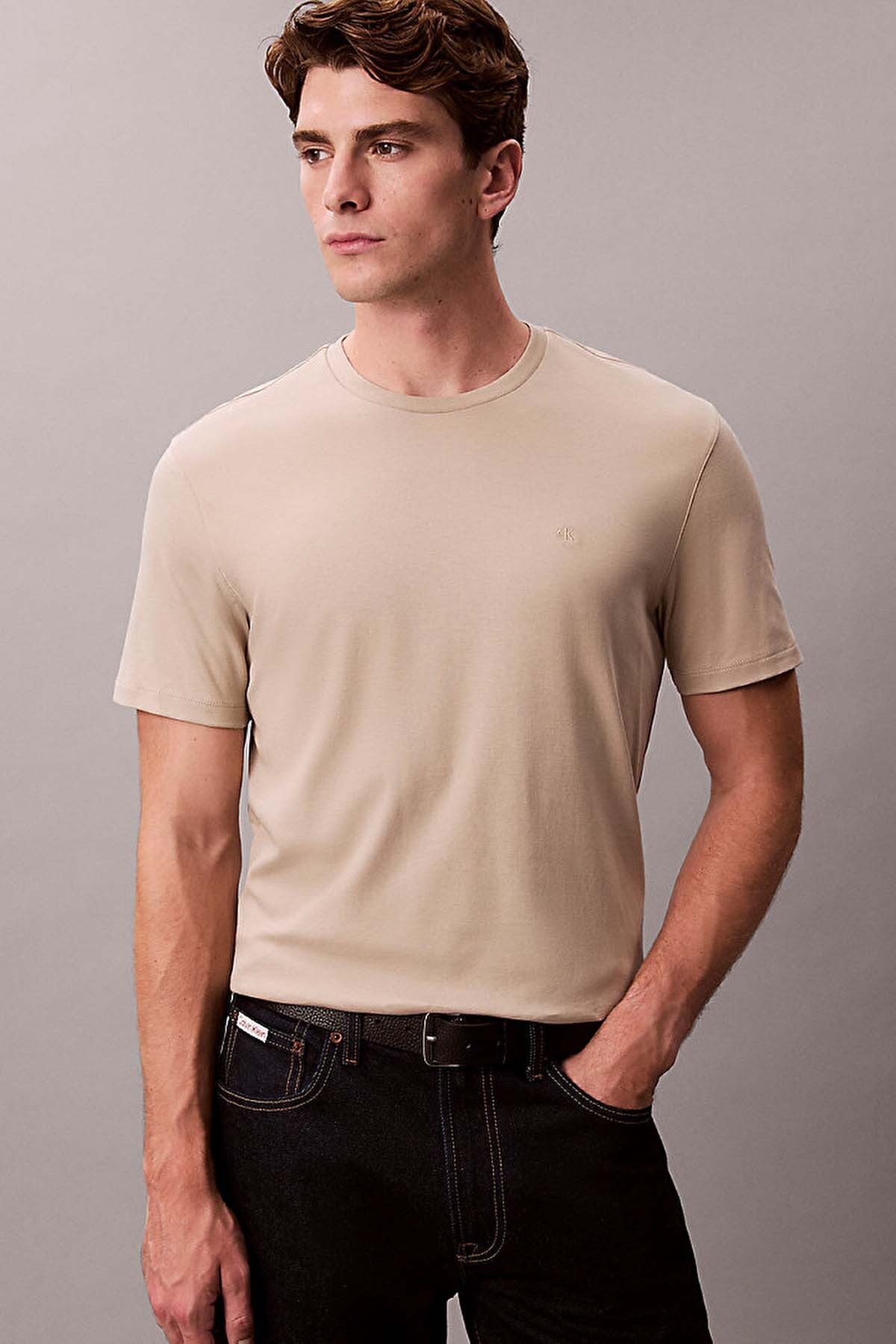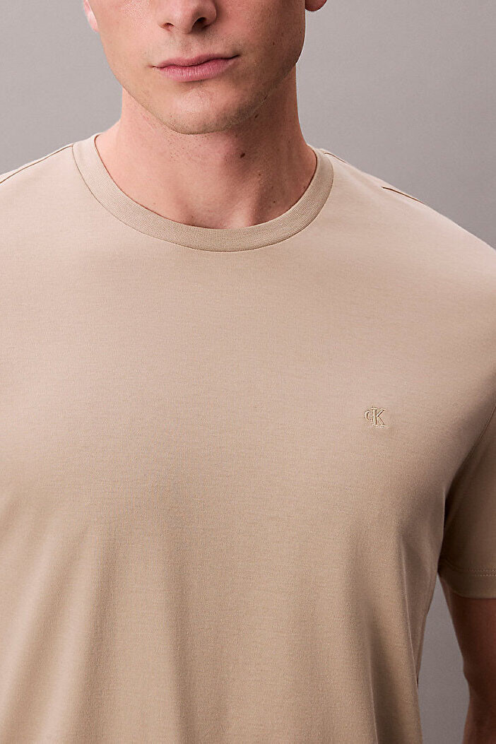 Minimalist bir estetik anlayışıyla tasarlanan modelin sol göğüs kısmında, kumaşla aynı tonda işlenmiş (tonal) ikonik "CK" monogram logo nakışı yer alır. Klasik bisiklet yaka ve kısa kollu silüeti, tam kalıp (regular fit) kesimiyle birleşerek zamansız bir duruş sergiler. Şehir hayatının temposunda çabasız şıklık arayanlar için ideal bir temel parça niteliğindedir.