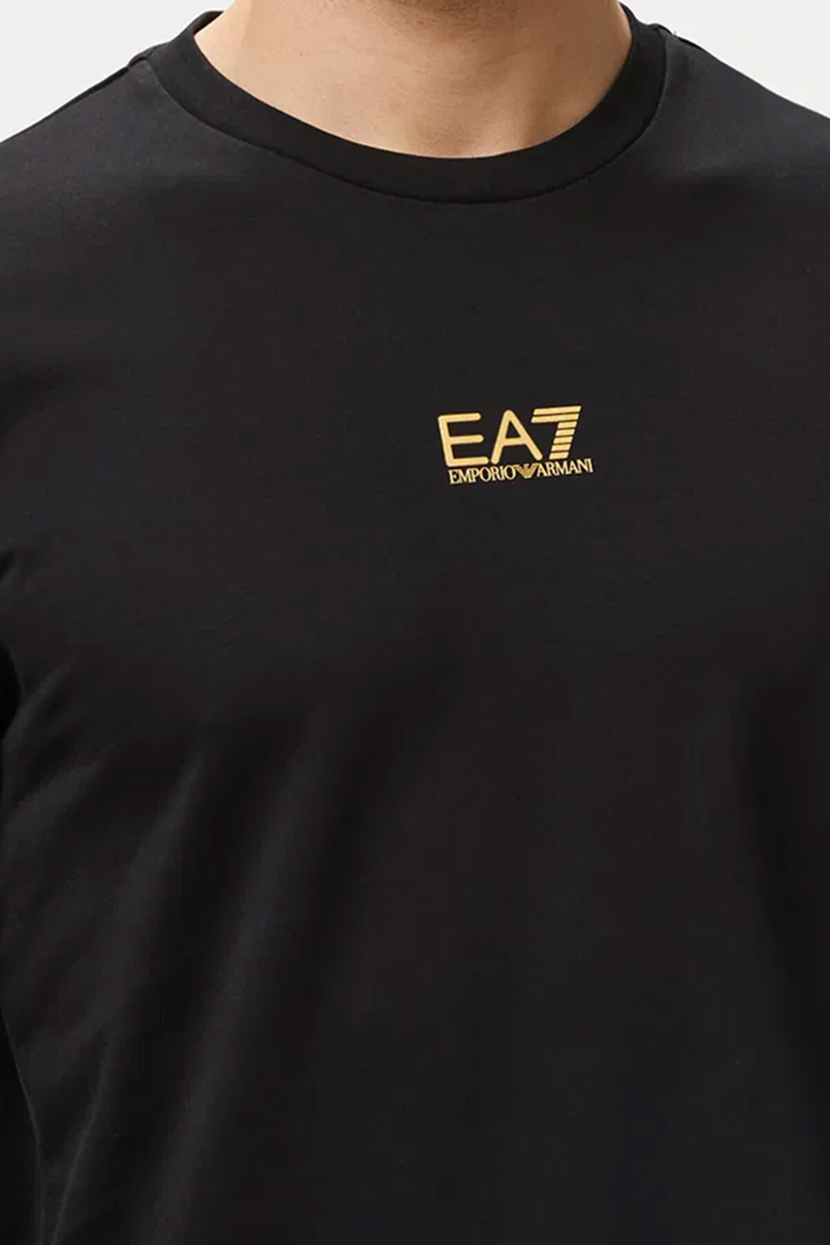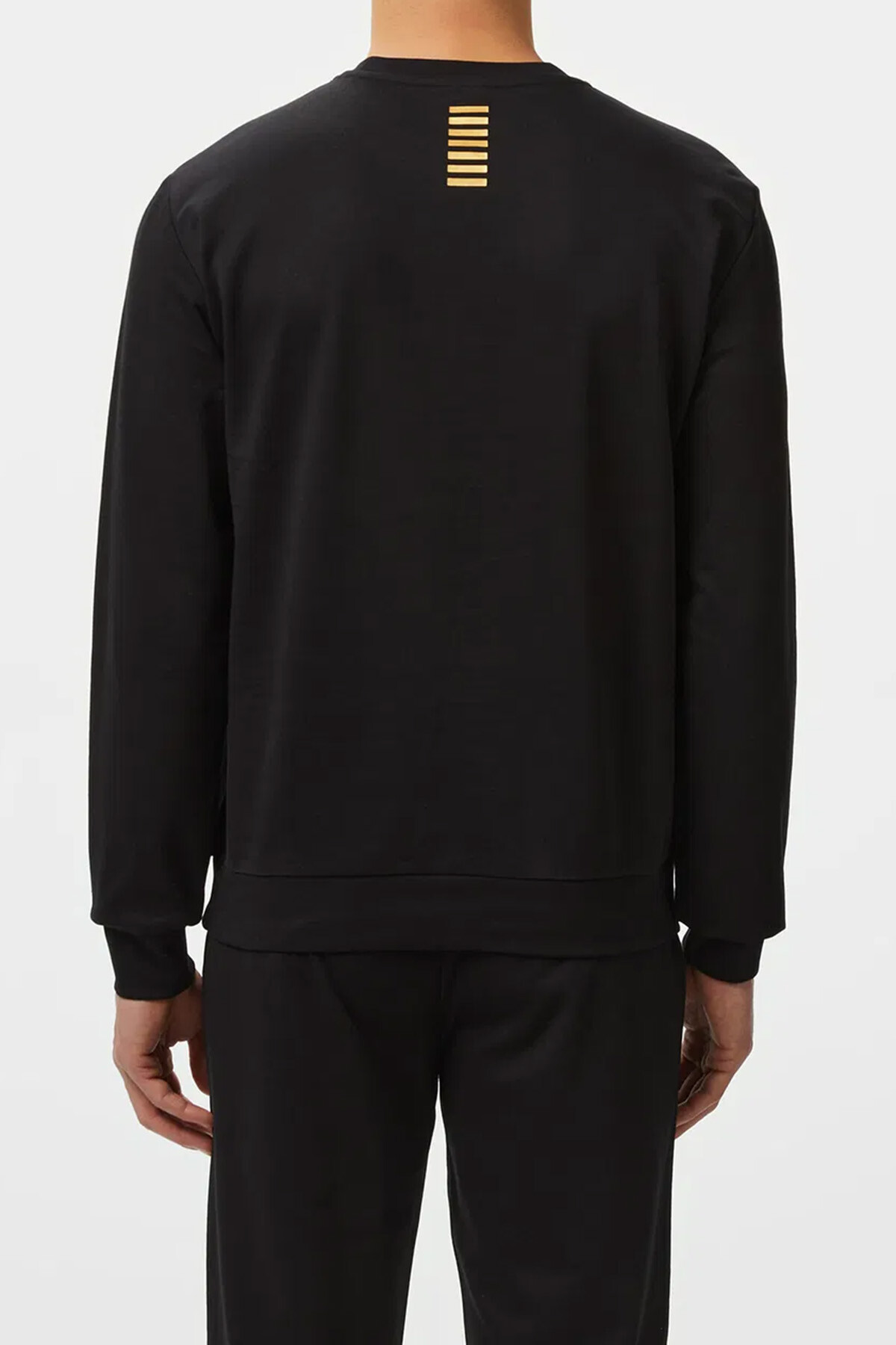 Yüksek pamuk oranlı yumuşak dokusuyla gün boyu konfor sağlayan bu siyah sweatshirt, şıklığı detaylarda arayan erkekler için tasarlandı. Göğüs ortasındaki minimal gold renkli marka logosu ve ense kısmındaki dikkat çekici grafik baskı detayı, sade tasarıma lüks bir dokunuş katar. Bisiklet yaka kesimi ve ribanalı manşetleri ile vücuda tam oturur, sportif ve günlük kombinlerinizin vazgeçilmezi olur