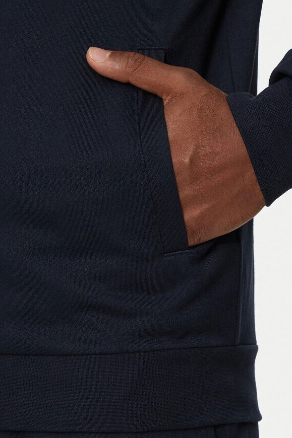 Yüksek pamuk oranına sahip yumuşak kumaşıyla gün boyu konfor sunan bu lacivert sweatshirt, sportif ve günlük şıklığı bir araya getiriyor. Tam boy fermuarlı tasarımı pratik bir kullanım sağlarken, ayarlanabilir kapüşonu serin havalarda ekstra koruma sunar. Göğüs üzerindeki minimal marka logolu detay, sade tasarıma modern bir dokunuş katar. Tam kalıp kesimi ile vücuda rahatça oturur.