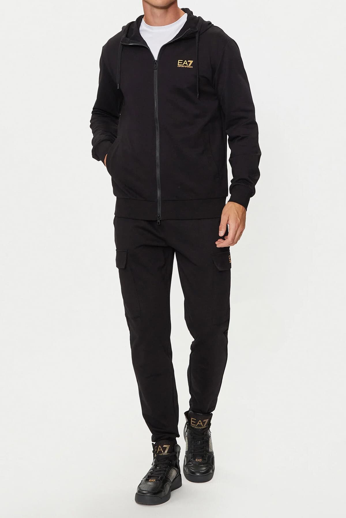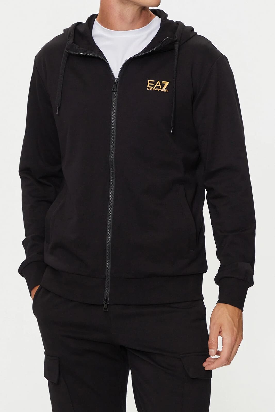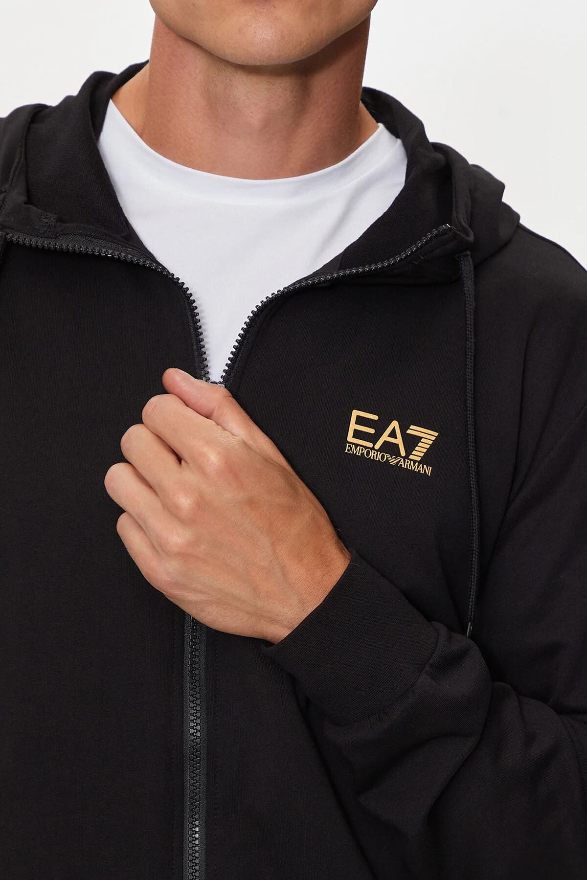 Yüksek pamuk oranına sahip yumuşak dokusuyla gün boyu üstün konfor sunan bu siyah sweatshirt, sportif şıklığı fonksiyonellikle buluşturuyor. Tam boy fermuarlı tasarımı sayesinde pratik bir giyim kolaylığı sağlarken, ayarlanabilir kapüşonu serin havalarda ekstra koruma sunar. Göğüs üzerindeki gold renkli minimal marka logosu, sade ve asil tasarıma lüks bir dokunuş katar. Yan cepleri ve rahat kalıbı ile hem antrenman öncesi hem de günlük şehir stiliniz için ideal bir tamamlayıcıdır.
