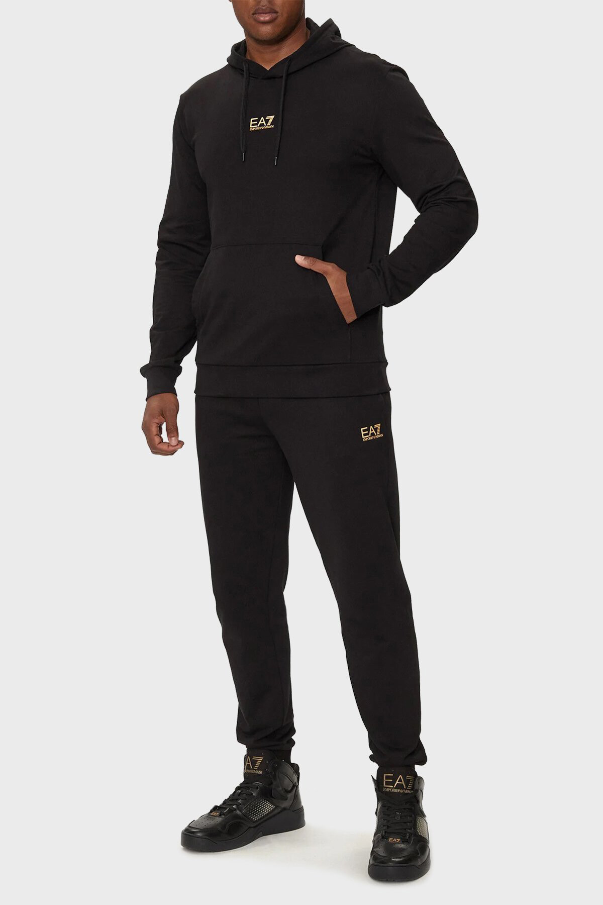 Yüksek pamuk içerikli yumuşak dokusuyla gün boyu konfor sunan bu siyah sweatshirt, sportif şıklığı gardırobunuza taşıyor. Tam kalıp kesimi ve ribanalı manşetleri ile vücuda rahatça otururken, ön kısımdaki ve kapüşon arkasındaki gold renkli marka logolu detayları tasarıma lüks bir dokunuş katar. Kanguru cep detayı pratik kullanım sağlarken, ayarlanabilir kapüşonu soğuk havalarda ekstra koruma sunar.