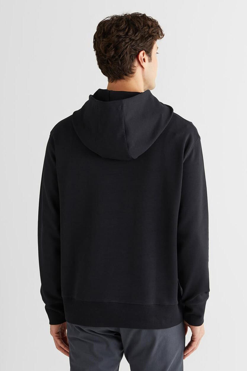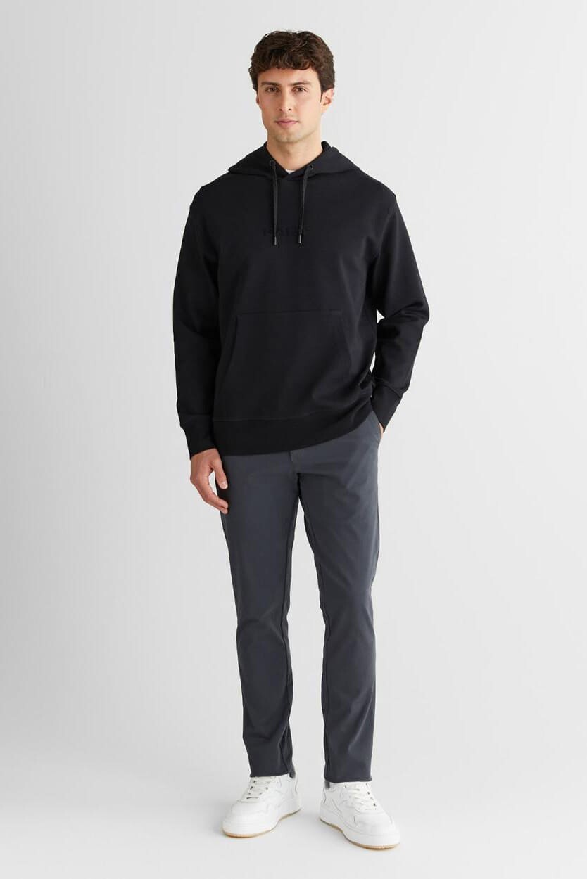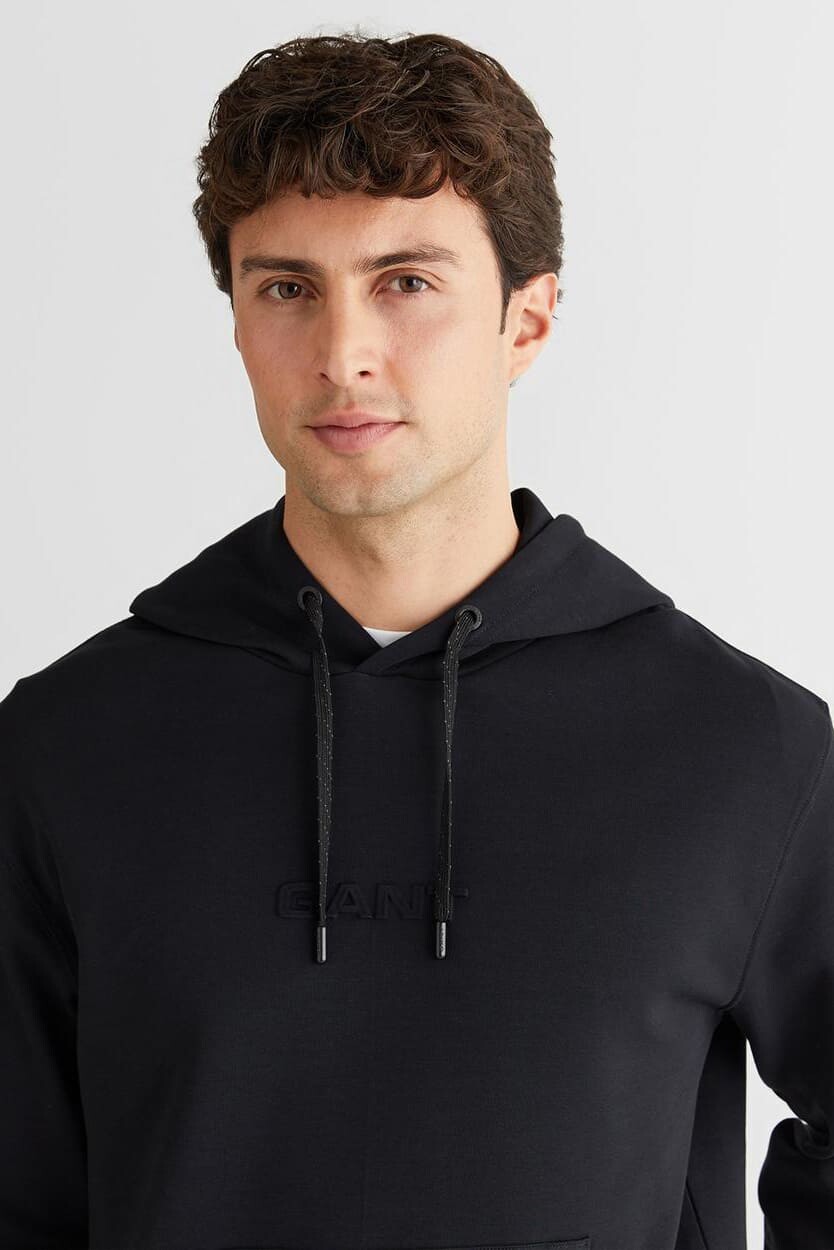 Siyahın asaletini sportif konforla birleştiren bu sweatshirt, yüksek pamuk içerikli kumaşıyla gün boyu yumuşak bir kullanım sunar. Tam kalıp kesimi ve ribanalı etek ucu ile kolları, vücuda ideal bir oturuş sağlar. Göğüs kısmındaki kumaşla aynı renkteki (tonal) kabartmalı marka logosu, tasarıma modern ve minimal bir şıklık katar. Desenli bağcık detayına sahip kapüşonu ve geniş kanguru cebi ile hem günlük şehir stilinizde hem de hafta sonu rahatlığında vazgeçilmeziniz olacaktır.