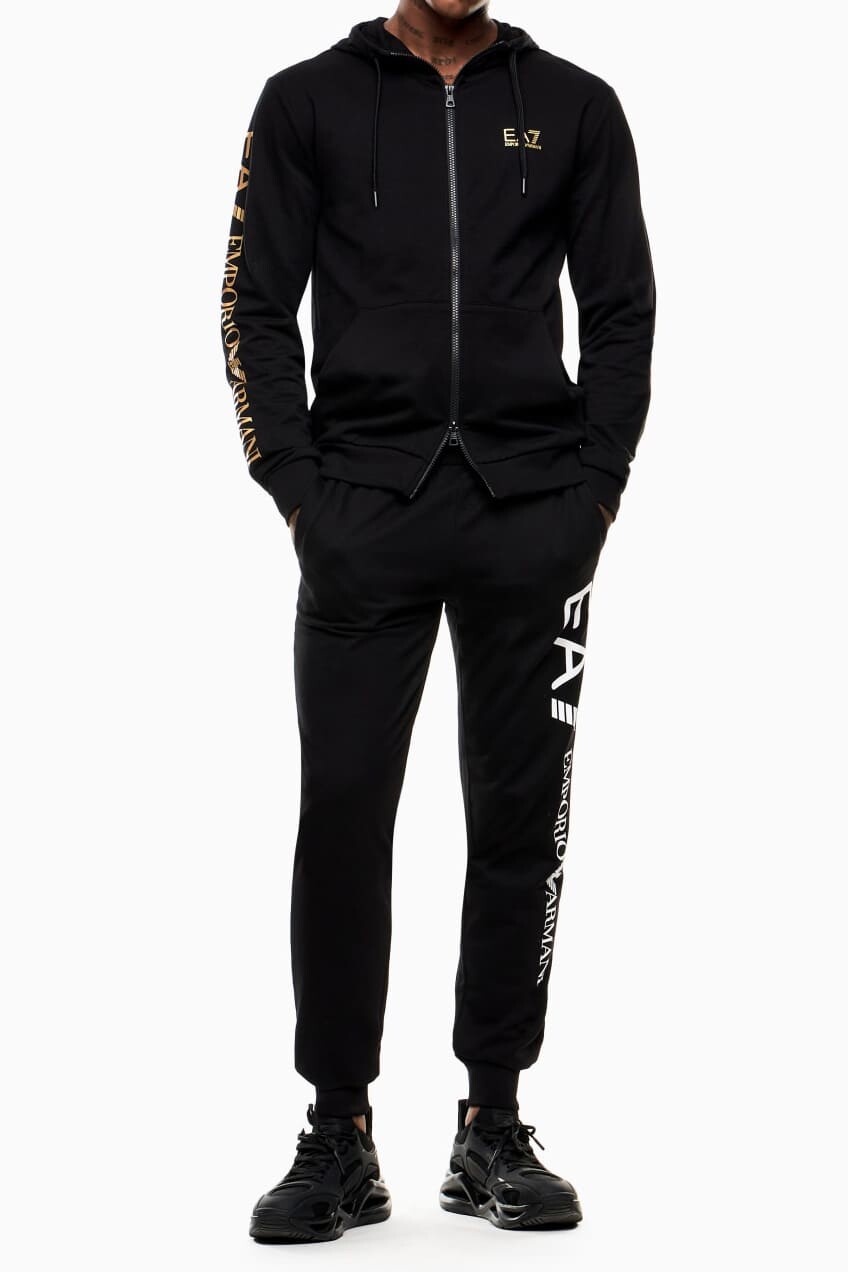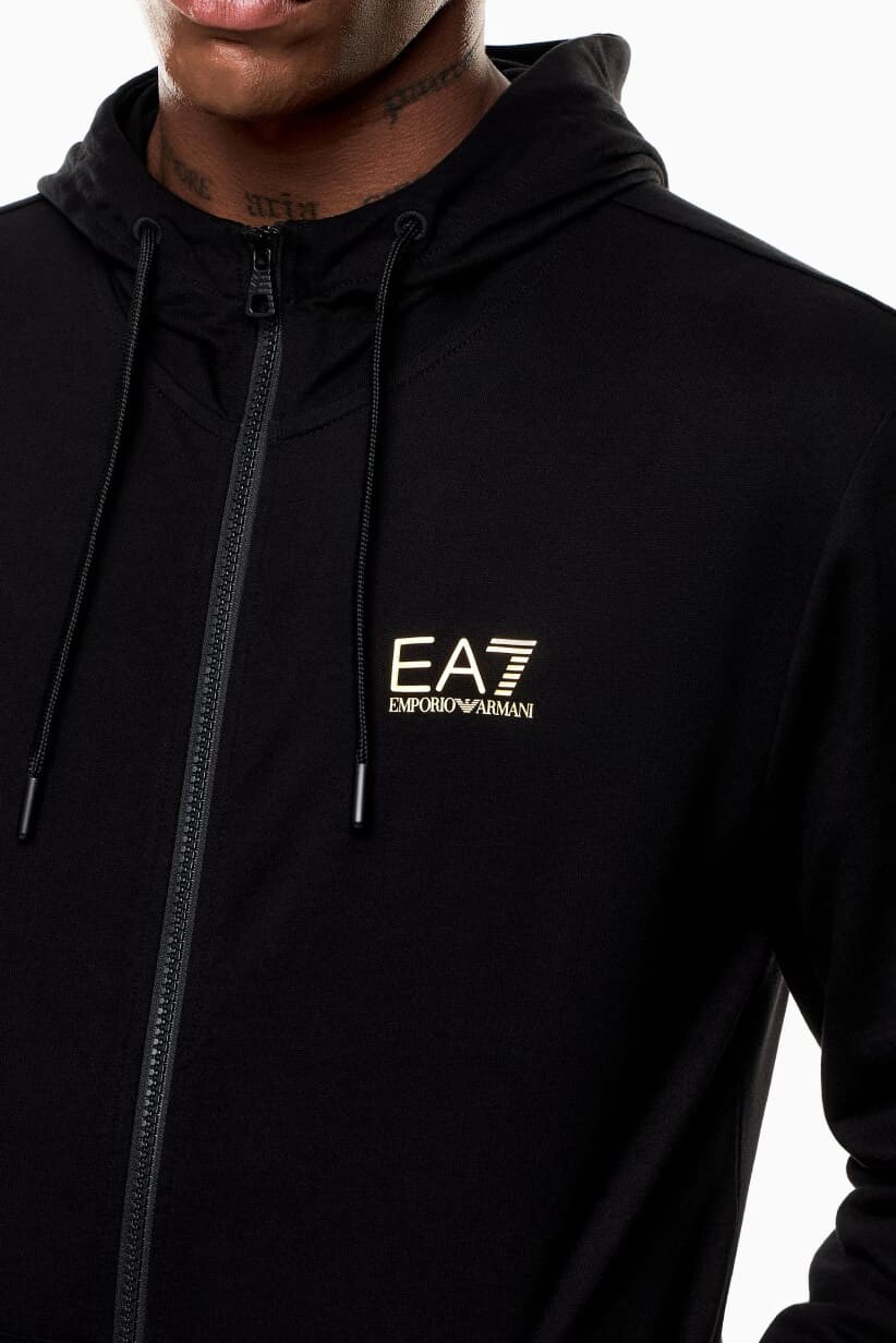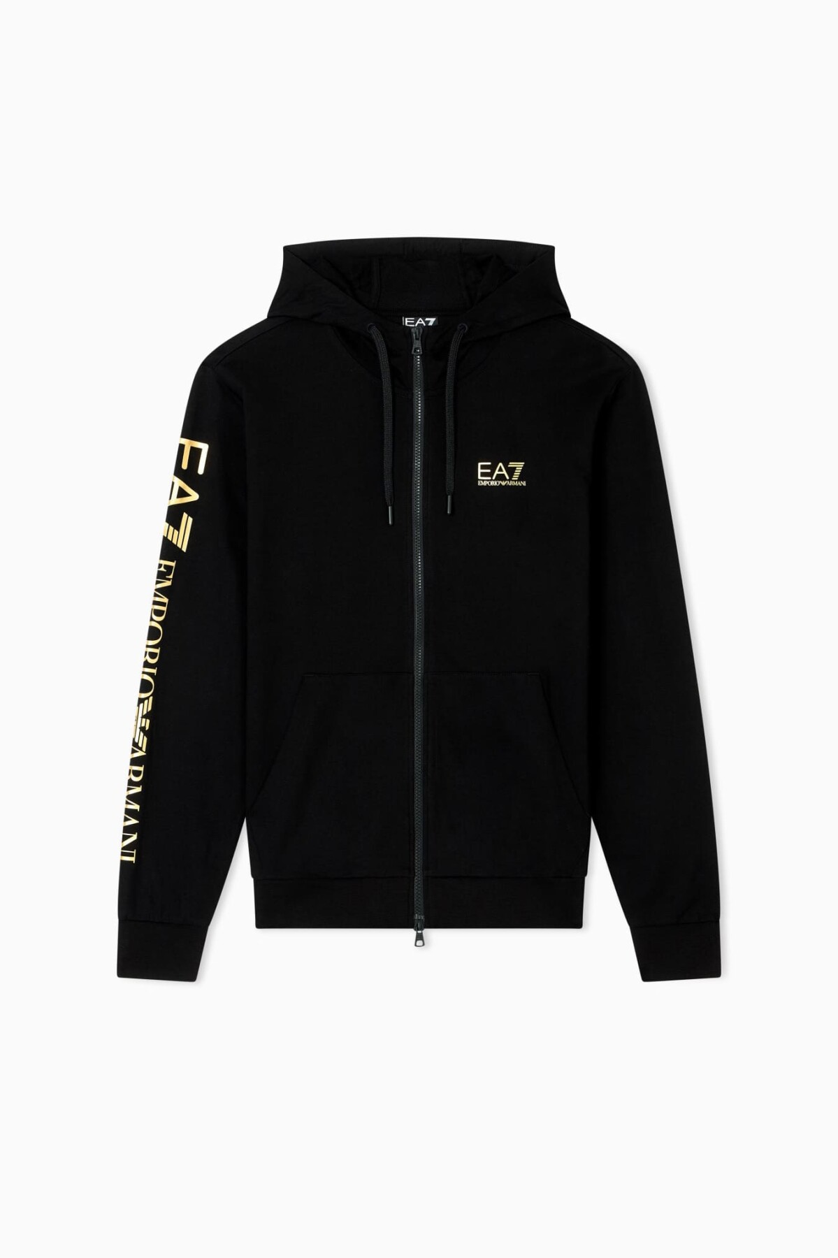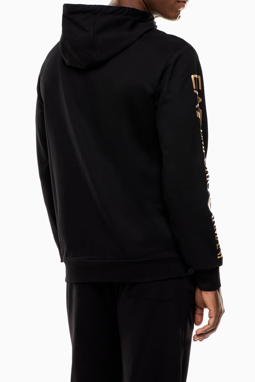 Siyahın asaletini altın rengi detayların lüks ışıltısıyla buluşturan bu sweatshirt, sportif tarzınıza premium bir dokunuş katıyor. Kolda büyük boyutlu altın rengi grafik marka logosu, tasarıma iddialı ve dikkat çekici bir karakter kazandırır. Sol göğüsteki minimal altın logo detayı bu güçlü duruşu zarifçe tamamlar. Yüksek pamuk oranlı yumuşak dokusu, tam boy fermuarlı pratik kullanımı ve ayarlanabilir kapüşonu ile hem konforlu hem de stil sahibi bir seçenektir.