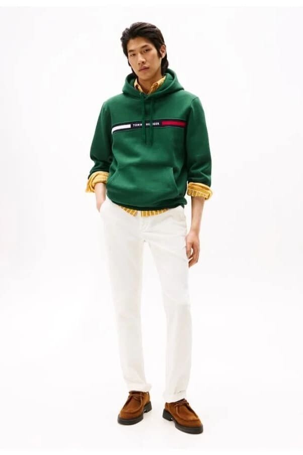 Erkek Th Chest Logo Drawstring Sweatshirt - Yeşil , markanın ikonik stil detaylarını günlük giyime taşıyan modern bir tasarımdır. Göğüs kısmındaki Hilfiger şerit detayı, sade yapıya dinamik bir dokunuş katar. %64 pamuk ve %36 polyester karışımlı kumaşı ile hem yumuşak hem de dayanıklıdır. Tam kalıba sahip bu model, kapüşonlu yapısıyla günlük kullanım için ideal bir rahatlık sunar.
