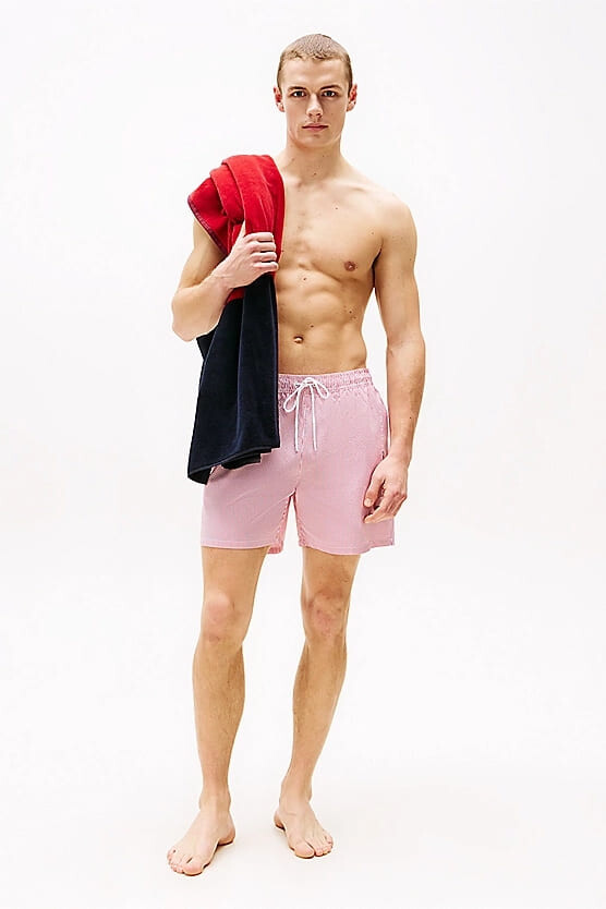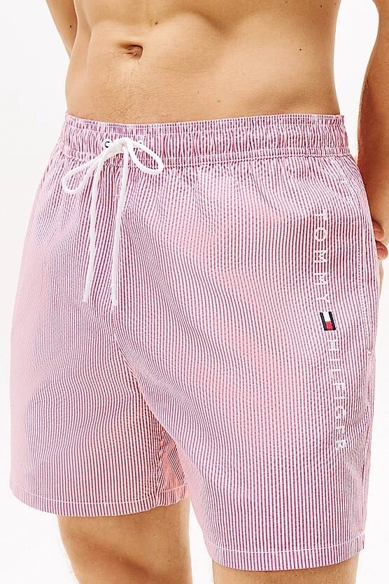 Erkek Th Orta Boy Çizgili Yüzme Şortu - Kırmızı