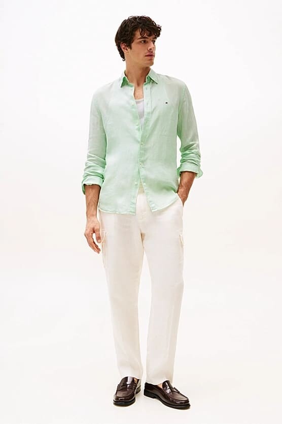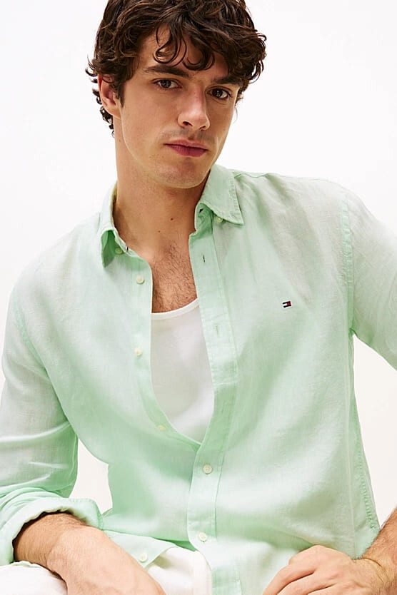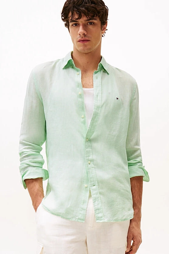 Erkek Th Pigment Dyed Solid Gömlek - Yeşil