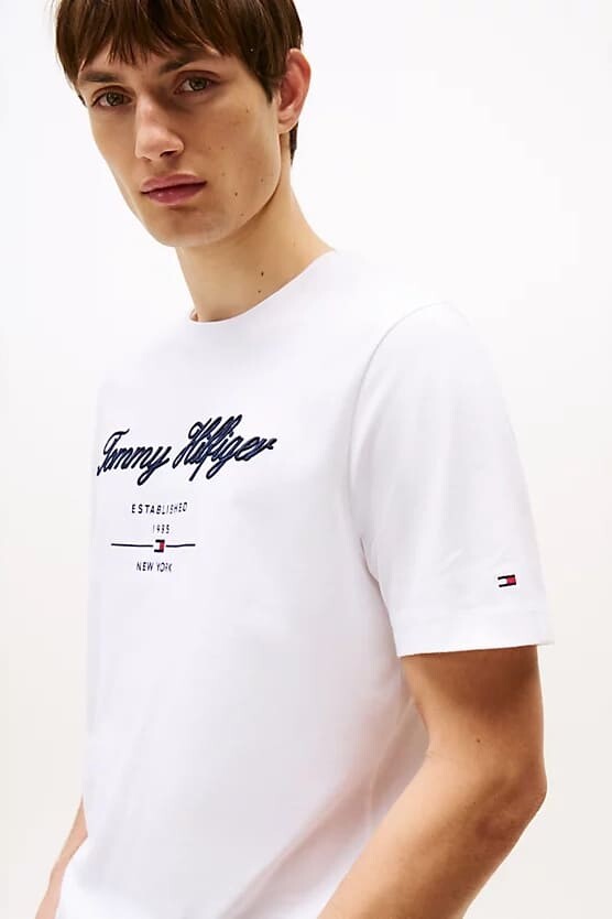Erkek Th Script Logo T-Shirt - Beyaz