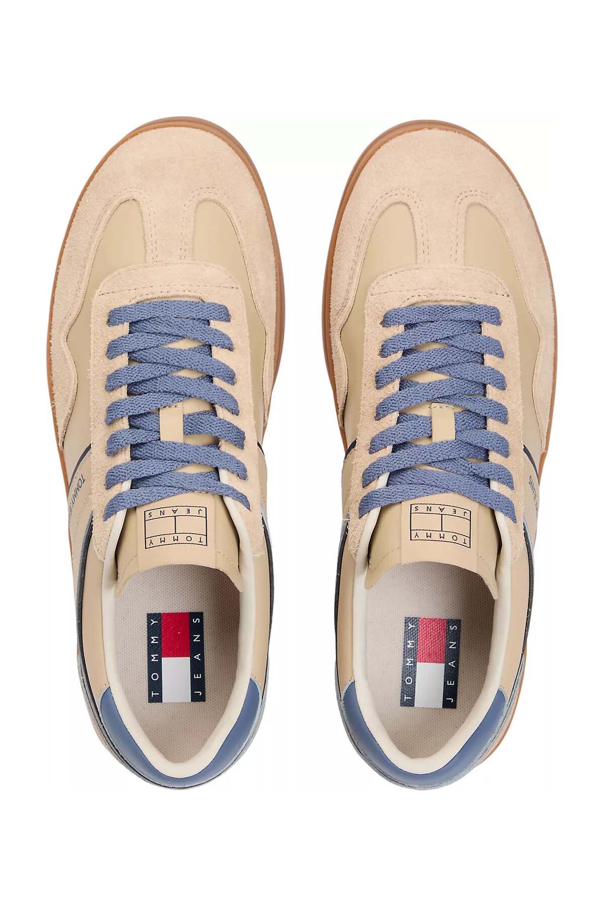 Retro kort ayakkabılarının zamansız stilini, modern bir doku ve renk paletiyle birleştiren bu sneaker, günlük kombinlerinize karakter katıyor. Bej tonlarındaki pürüzsüz ve süet paneller, mavi renkli detaylarla birleşerek dinamik bir görünüm sunar. Klasik kauçuk tabanı ve sade silüeti, onu hem jean pantolonlar hem de daha şık pantolonlarla uyumlu hale getirir. Bağcıklı yapısı ve konforlu iç astarıyla gün boyu rahat bir kullanım sunar.