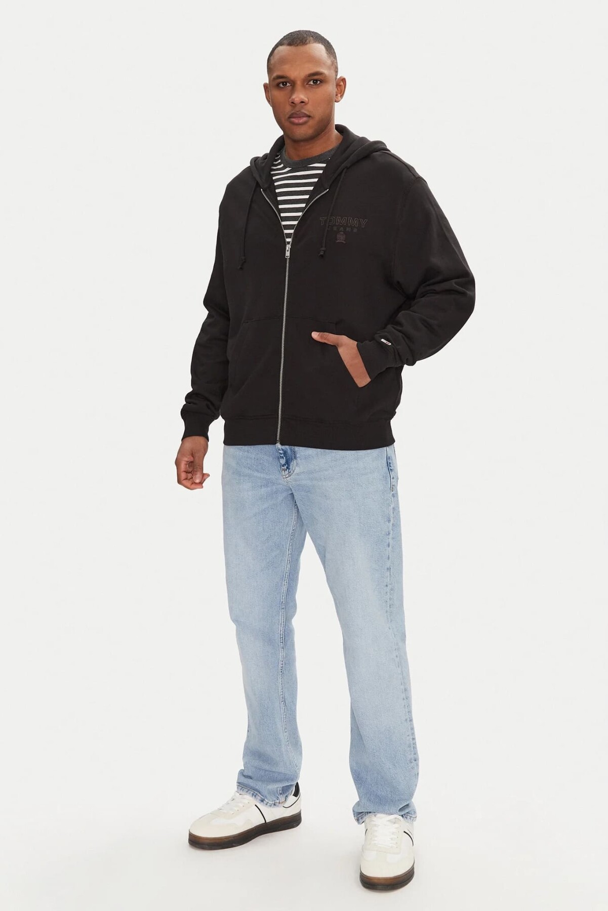 Erkek Tjm Varsity Tonal Fermuarlı Sweatshirt - Siyah
