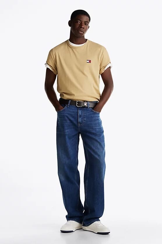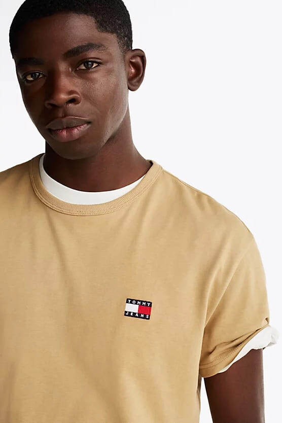 Erkek Tommy Badge Crew Yaka T-Shirt - Açık Kahverengi