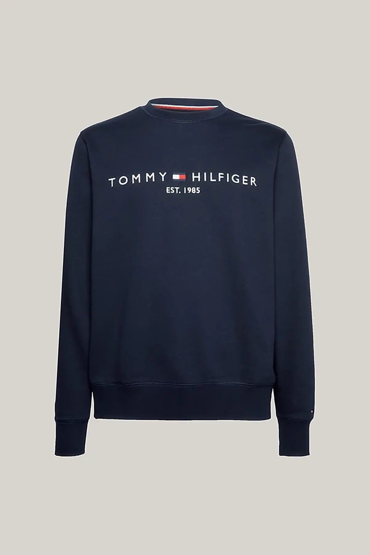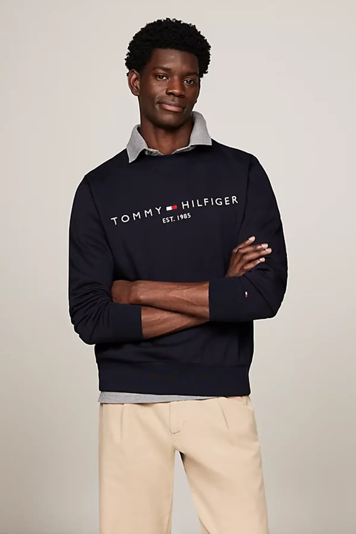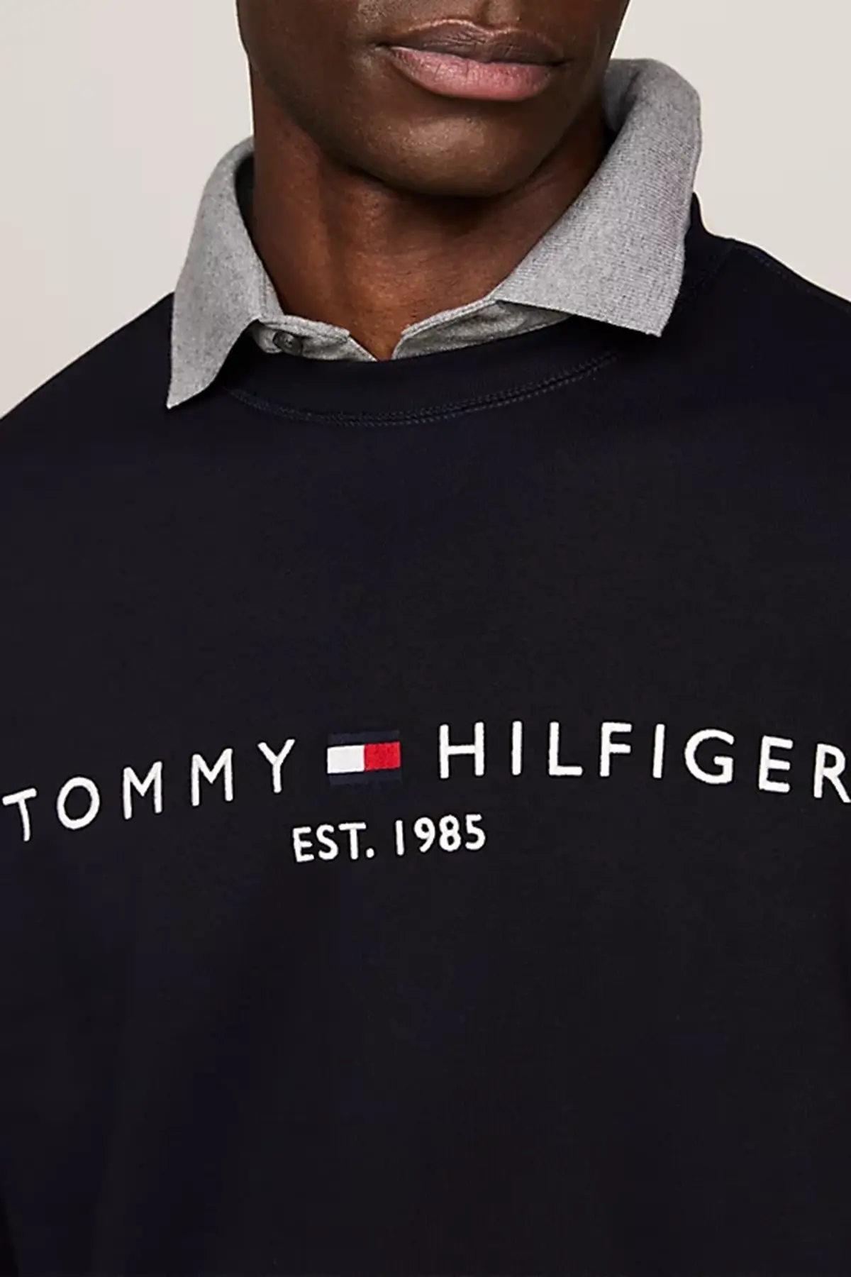 Erkek Tommy Logo Nakışlı Bisiklet Yaka Sweatshirt - Lacivert