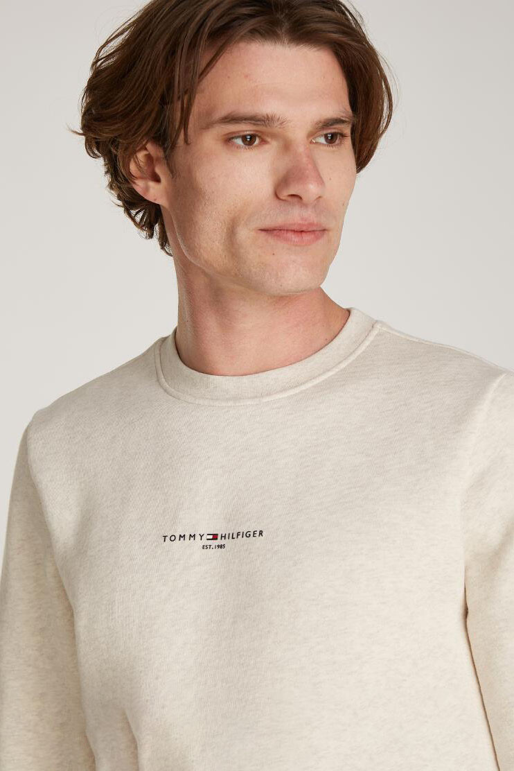 Erkek Tommy Logo Tıpped Crewneck Sweatshirt-Krem