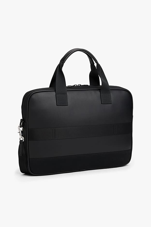 Modern profesyoneller için tasarlanmış bu şık çanta, pürüzsüz ve dokulu yüzeyleri bir araya getiren tasarımıyla öne çıkıyor. Fermuarlı ana bölmesi, cihazınızı korumak için tasarlanmış dahili bir laptop bölmesine sahiptir. Dış kısımdaki fermuarlı cep, sık kullandığınız eşyalara kolay erişim sağlar. Klasik bir evrak çantası gibi çift el askısıyla taşıyabilir veya çıkarılabilir dokuma askısını takarak omuzda ya da çapraz olarak rahatça kullanabilirsiniz. Ön cepteki yazı logosu, tasarıma rafine bir son dokunuş katar.