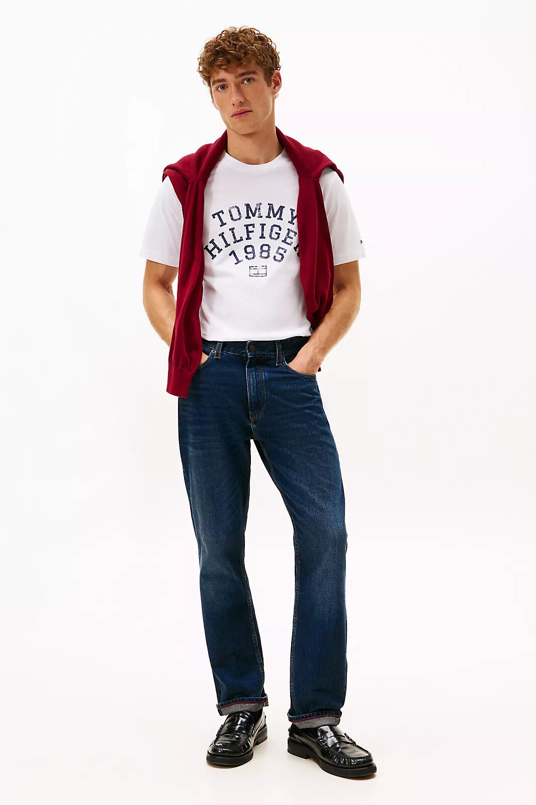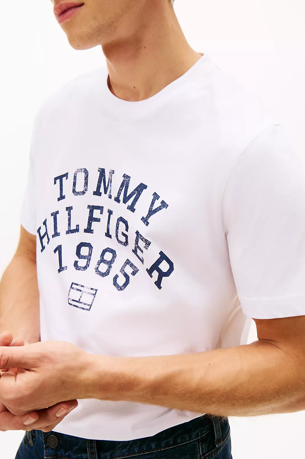 Göğüs kısmındaki kolej stili kavisli yazı baskısı ve "1985" detayıyla retro spor giyim estetiğini günümüze taşıyan bu tişört, ferah beyaz tonuyla gardırobunuzun en dinamik parçalarından biri olmaya adaydır. %100 pamuklu doğal dokusu sayesinde gün boyu cildinize nefes aldırarak terletmeyen, hafif ve yumuşak bir kullanım deneyimi sunar. Klasik bisiklet yaka kesimi ve vücudu sıkmadan saran regular kalıbı, hareket özgürlüğünüzü desteklerken her mevsim rahatlıkla tercih edebileceğiniz zamansız bir silüet yaratır. Merkezdeki lacivert tonlu baskı ve koldaki minik logo, beyaz zemin üzerinde şık ve sportif bir kontrast oluşturur.