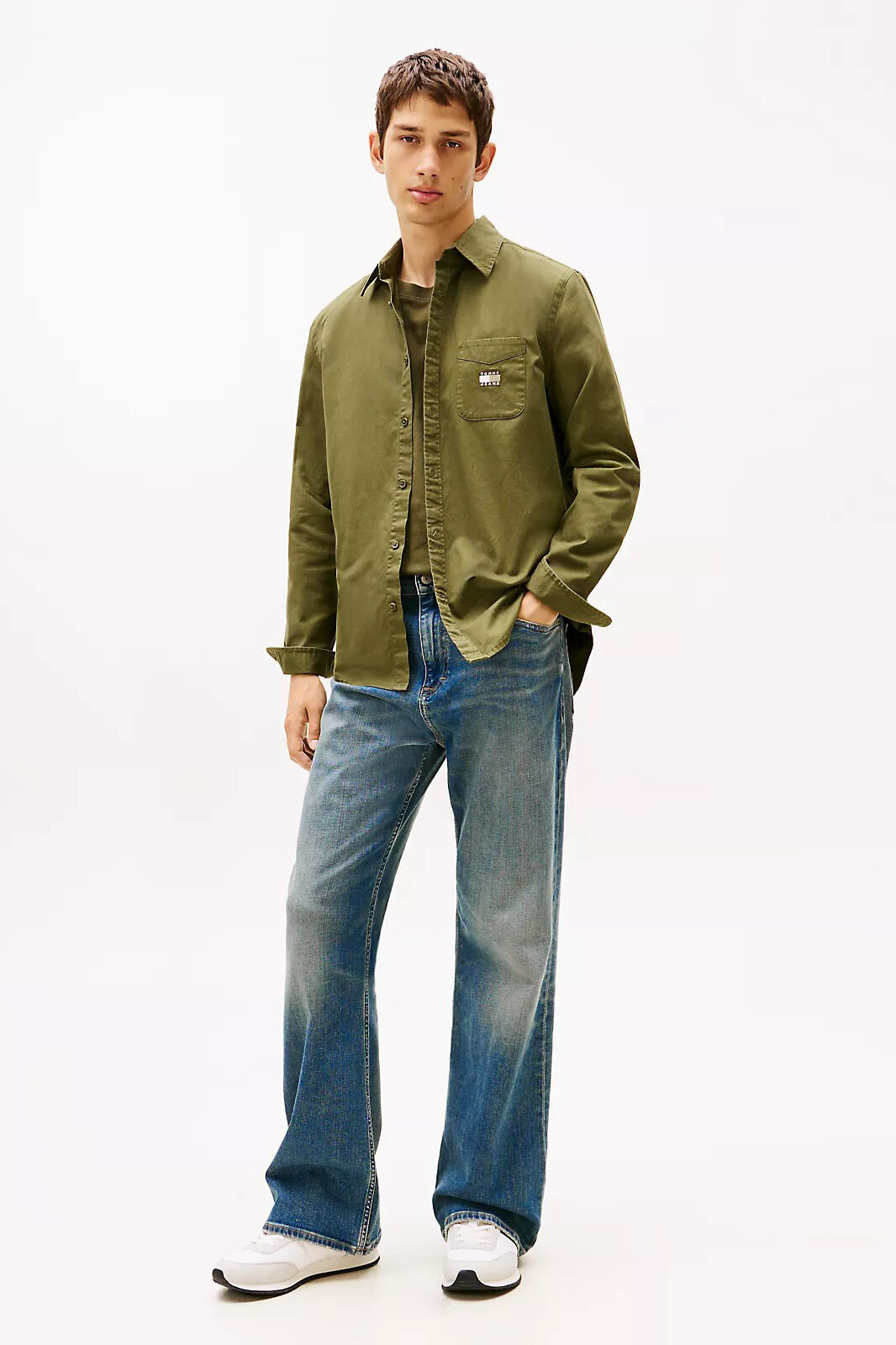 Yıkanmış twill dokusunun sunduğu doğal ve tok duruşla casual stilinize karakter katan bu gömlek, her mevsim katmanlı giyimin en güçlü oyuncusu olmaya adaydır. %100 pamuklu yapısı sayesinde cildinize nefes aldıran konforlu bir kullanım sunarken, haki yeşili tonu doğadan ilham alan sakin ve maskülen bir görünüm yaratır. Sol göğüs üzerindeki kapaklı cep detayı ve üzerindeki arma, tasarıma işlevsel bir hareket katarak işlevsel giyim trendini modern bir çizgiyle yorumlar. Vücudu sıkmadan saran tam kalıbı ve kavisli etek ucu, ister pantolon içine sokarak ister dışarıda bırakarak kullanabileceğiniz çok yönlü bir silüet sağlar.