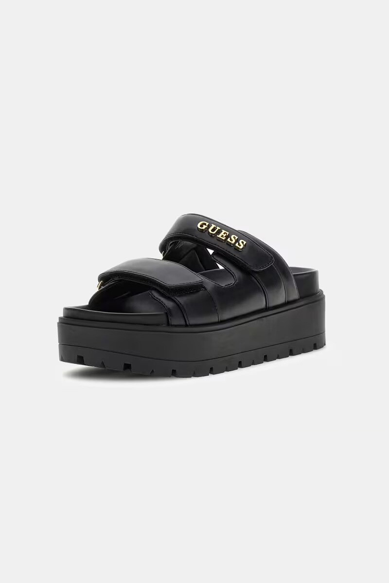 Ayarlanabilir cırt cırtlı çift üst bandı, ayağınızın formuna tam uyum sağlayarak kişiselleştirilmiş ve dengeli bir adımlama sunar. Geniş ve kalın yapılı dolgu tabanı, zemin etkisini minimuma indirip topuklu ayakkabı yorgunluğu yaratmadan boyunuzu ekstra uzun gösterirken; tamamen açık arka formu eğilmeye gerek kalmadan tek hamlede giyilebilme pratikliği sağlayarak günlük rutininizde hız kazandırır.