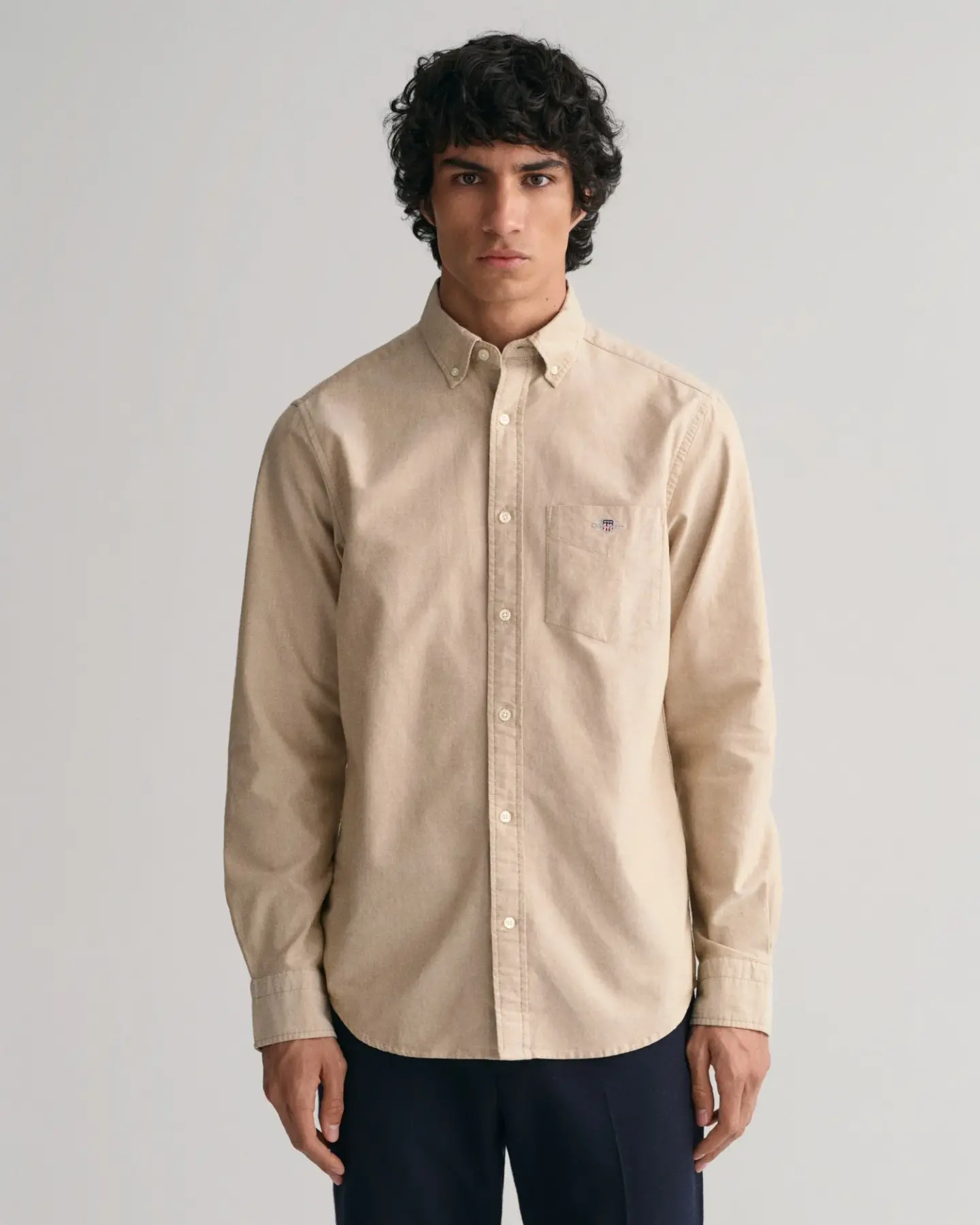 Erkek Regular Fit Düğmeli Yaka Gömlek-Kahverengi