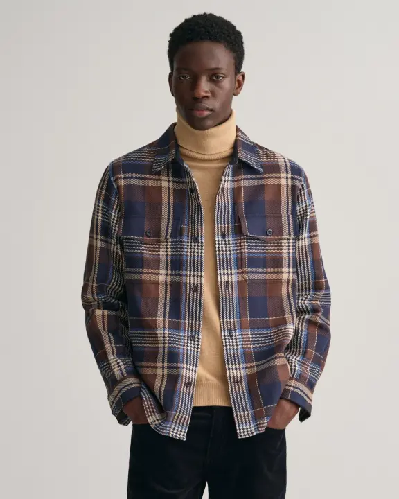 Erkek Regular Fit Klasik Yaka Kareli Gömlek-Lacivert