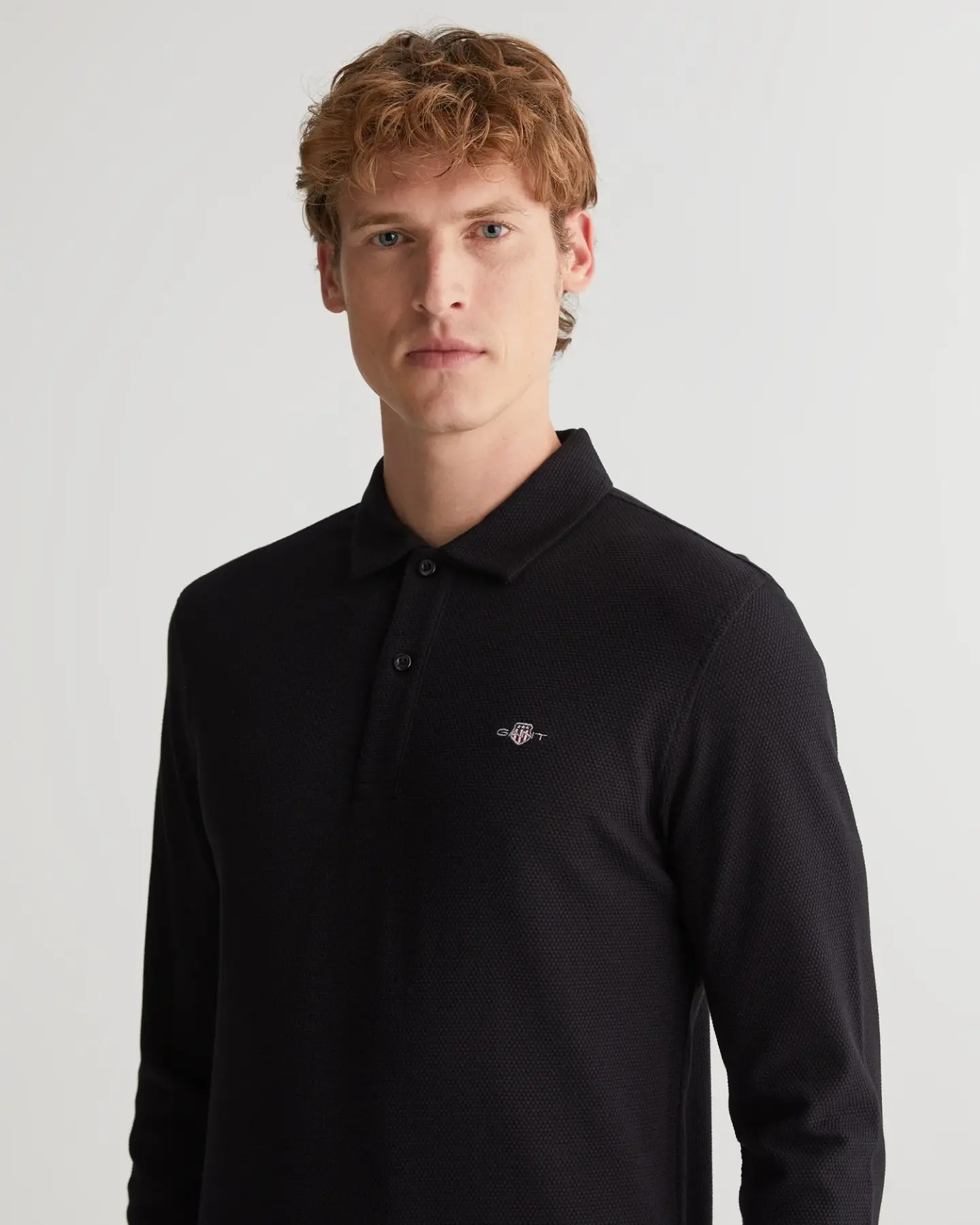 Erkek Regular Fit Logolu Polo Kazak-Siyah