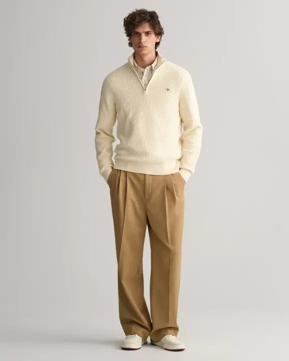 Erkek Regular Fit Yarım Fermuarlı Kazak- Krem