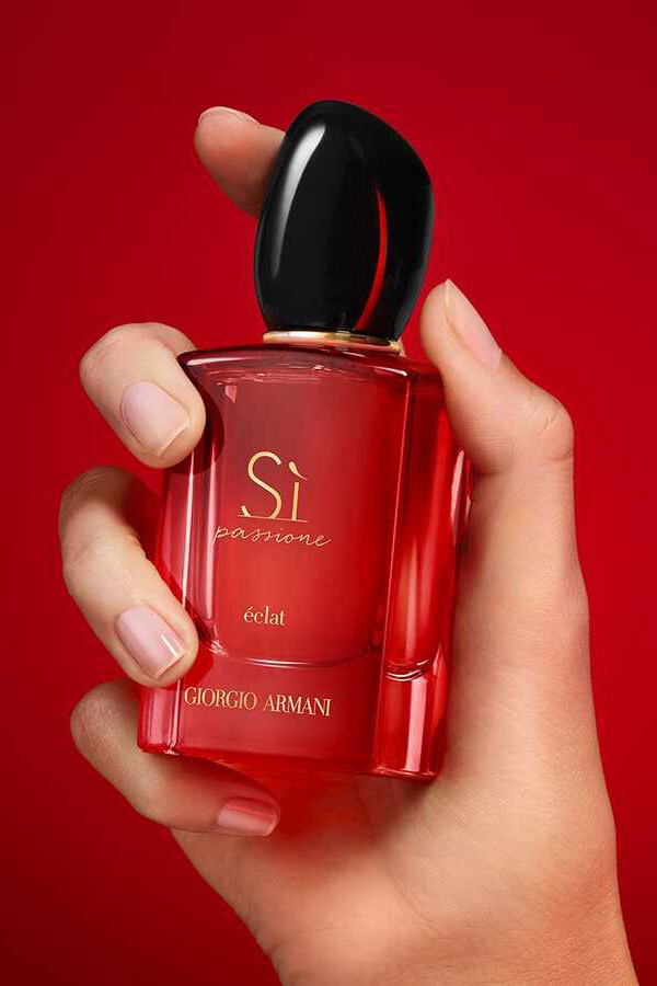Parfümün Sì Passione parlaklığı, sürdürülebilir bir şekilde Calabria, İtalya'dan temin edilen ve Giorgio Armani için kokuya başka bir efervesan hafiflik unsuru katmak için hazırlanmış bergamot ile parlak siyah frenk üzümü uyumunu birleştirir.